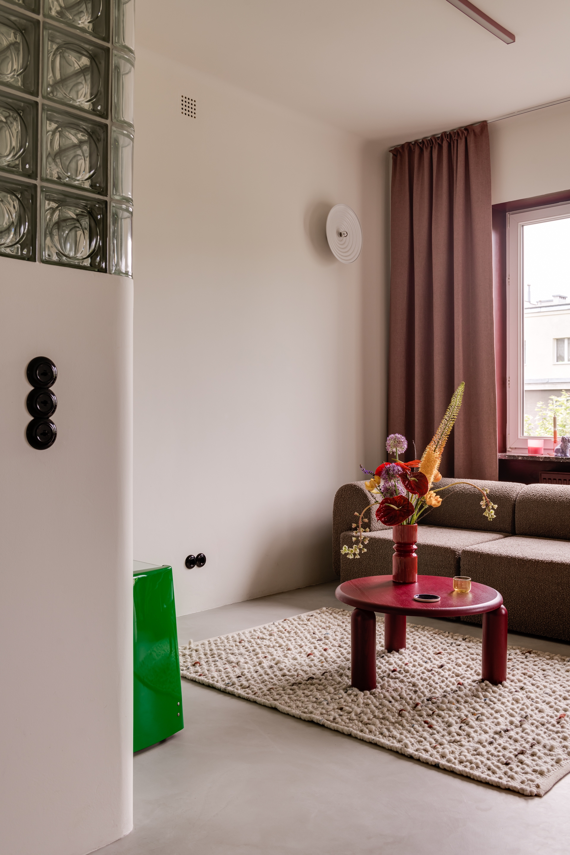 The apartment’s owner, Paulina, shares the space with her beloved dachshund, Gustaw. Paulina works in the creative industry as an art director, which is why she approached the studio selection process with great awareness. She was familiar with designs by Marcin from Mistovia’s office thanks to Instagram, and she liked the aesthetics of the interiors he created. Therefore, when considering the choice of a design office, after an extended search period, she decided to select his studio. This cooperation could not possibly fail.
