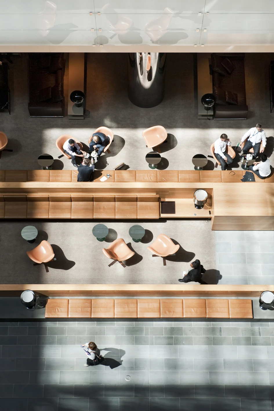Urban design principles were used to activate ‘spaces between places’ – juxtaposing noisy and quiet, hot and cold, territorial and non territorial spaces to create flow and vibrancy. Five distinct hub types are distributed across 44 individual hub spaces that connect quiet working zones.