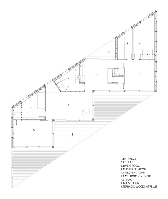 The starting point for this project was to provide a direct relationship with the dramatic archipelago landscape, and to create a simple platform which would offer several diverse readings of the relationship between space and nature.