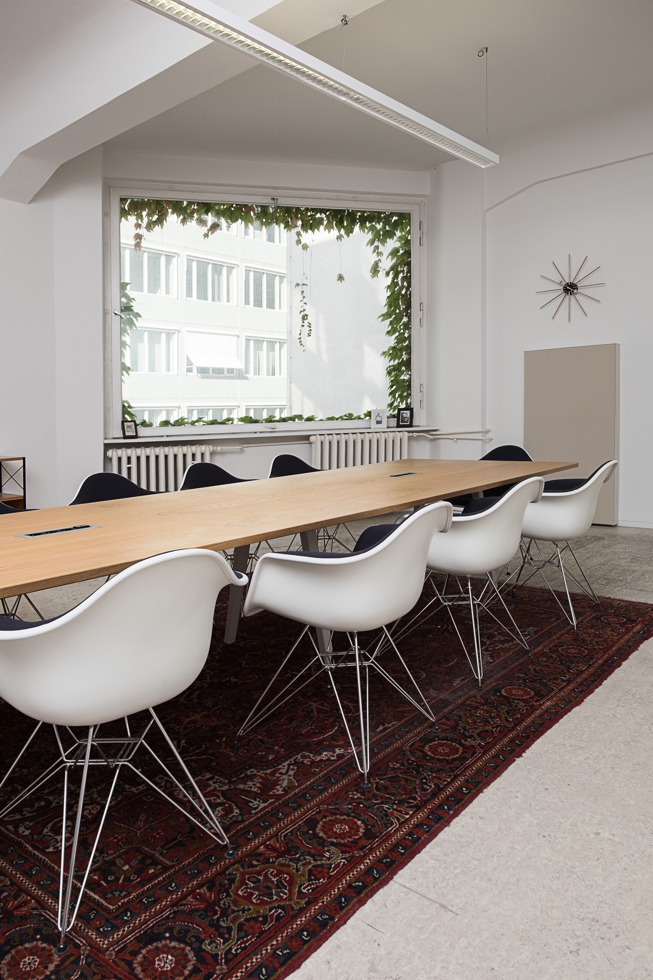 In collaboration with Vitra, we developed a clean concept for the social media agency’s work space in the heart of Berlin near Checkpoint Charlie. The industrial character and quality of light in this beautiful open loft asked for only minimal changes.