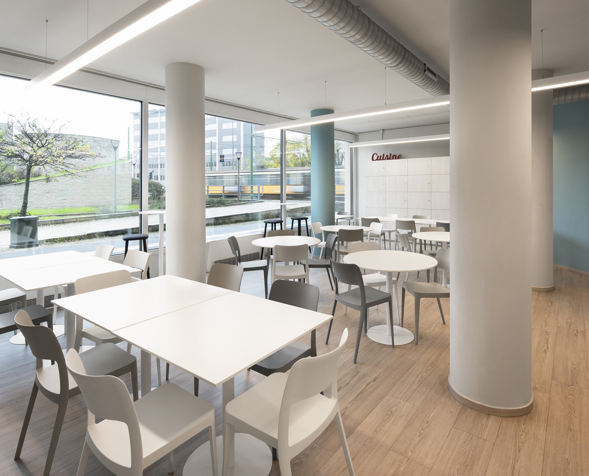 The new organization of the interior areas also reflects the architectural firm’s philosophy, which is focused on the wellbeing of the people who are interacting with the spaces designed: there are new views overlooking the municipal park, increasing the amount of natural light entering the building throughout the day.