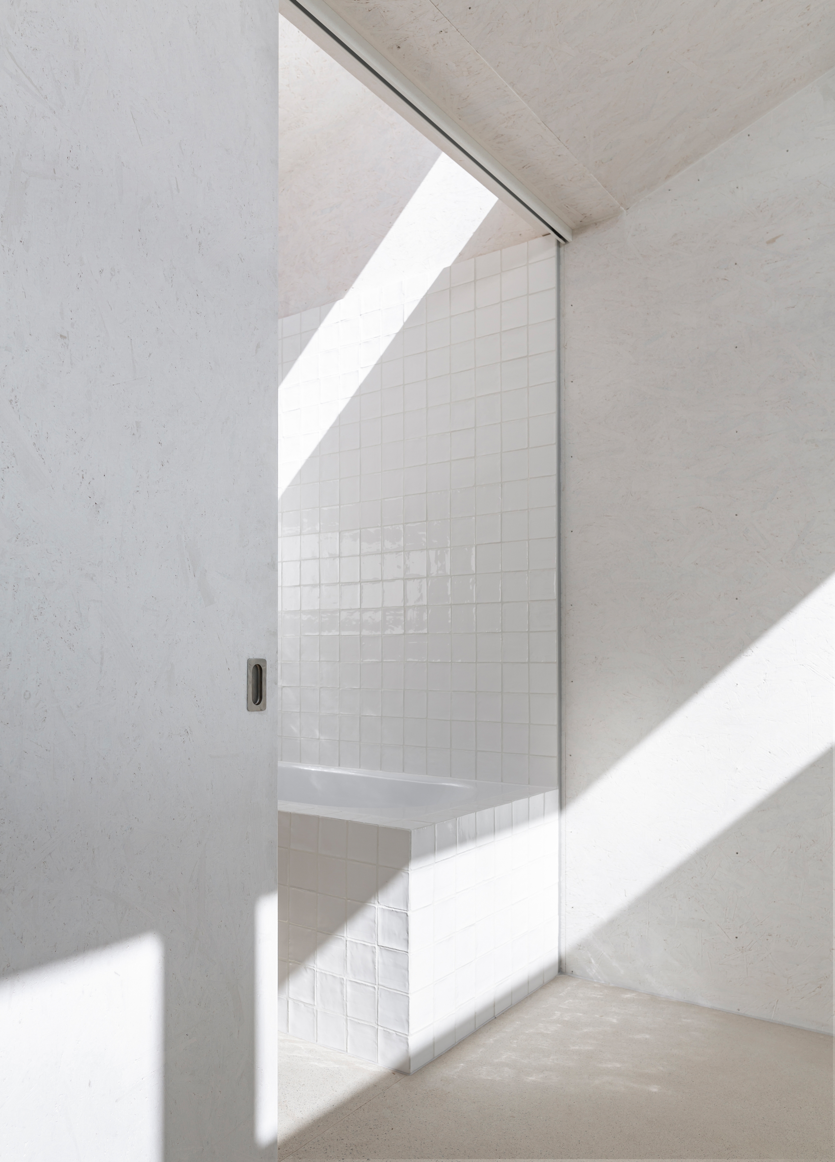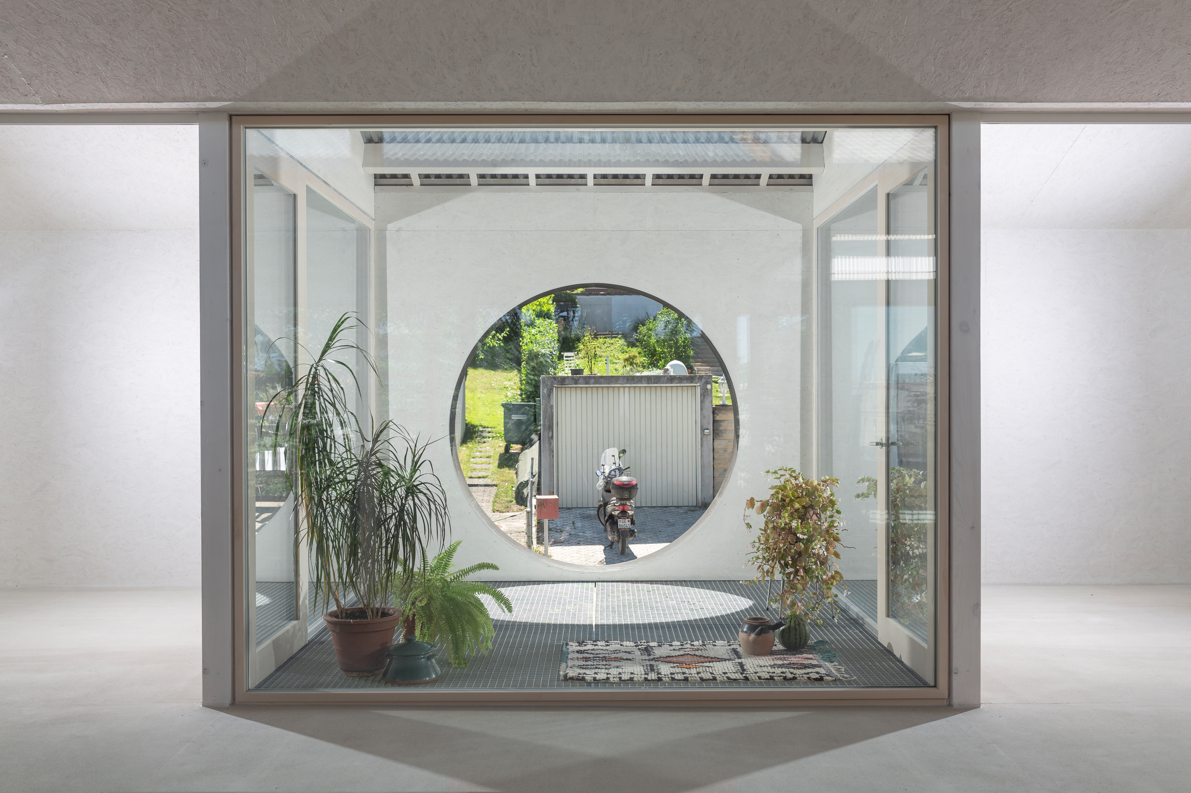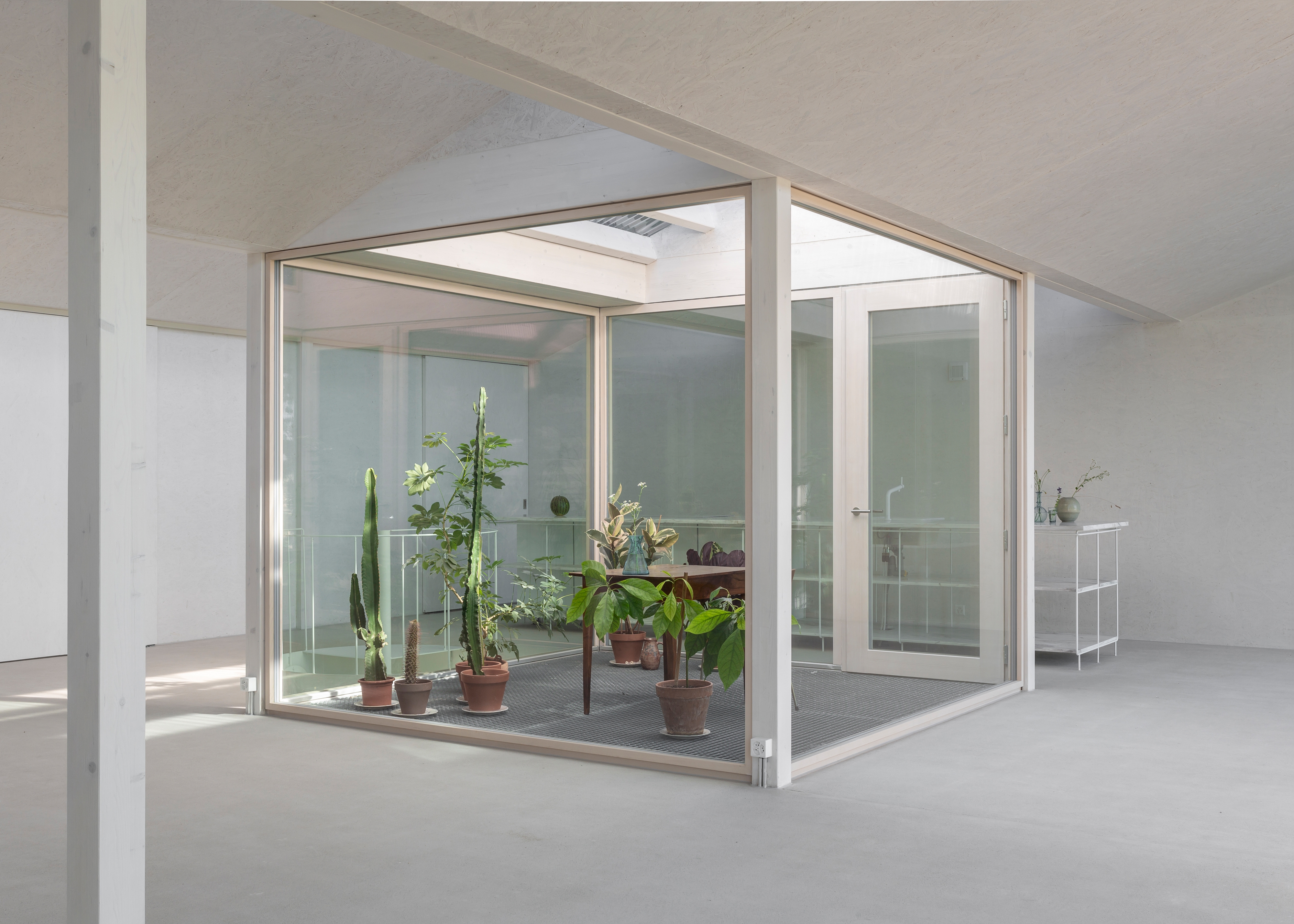 Casa CCFF is a domestic factory floating above an untouched garden. Mimicking the surrounding industrial shed roofs, the large open volume is filled with sunlight. The views to the exterior are carefully framed to create a brightly lit intimacy in this highly urban environment.