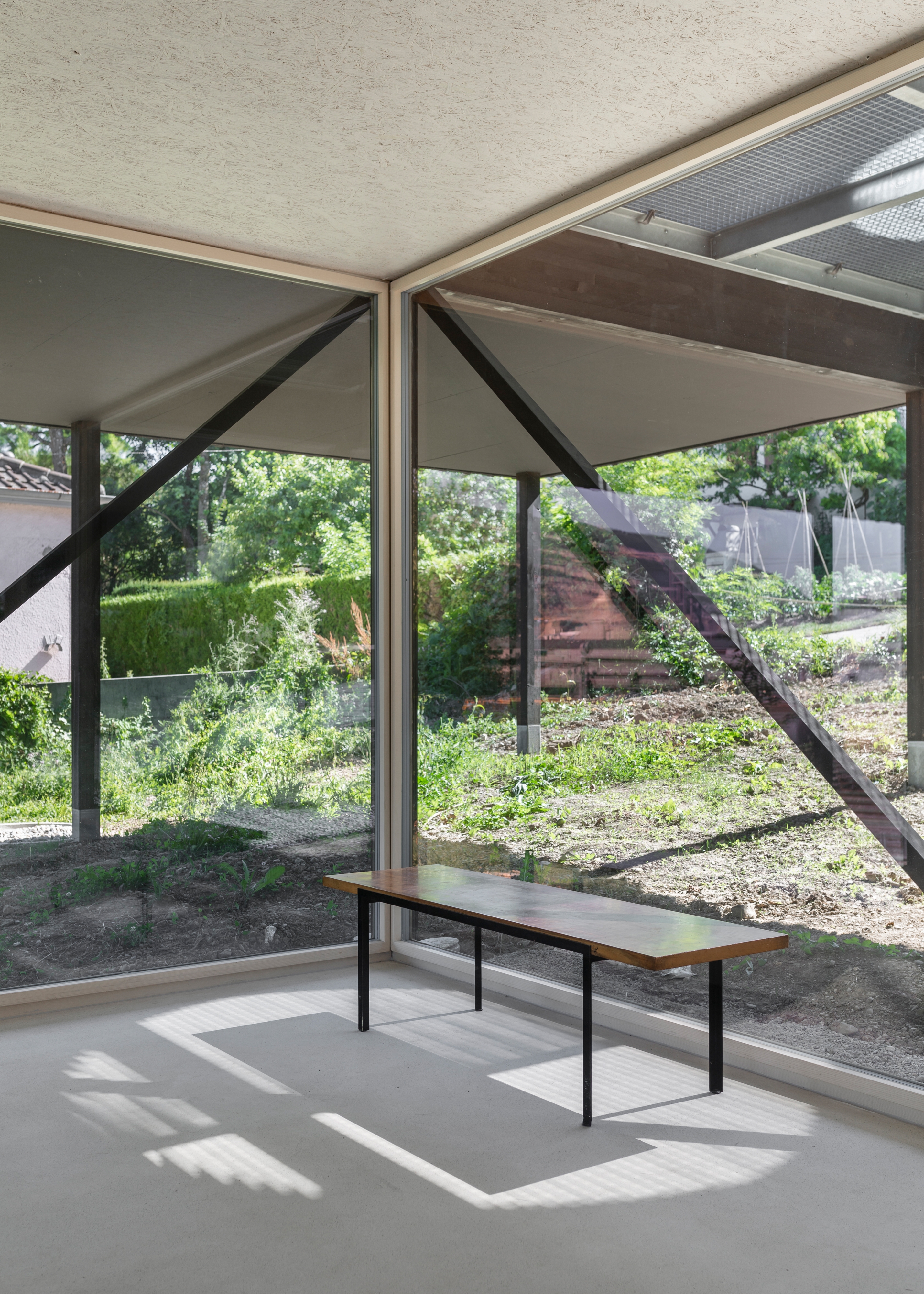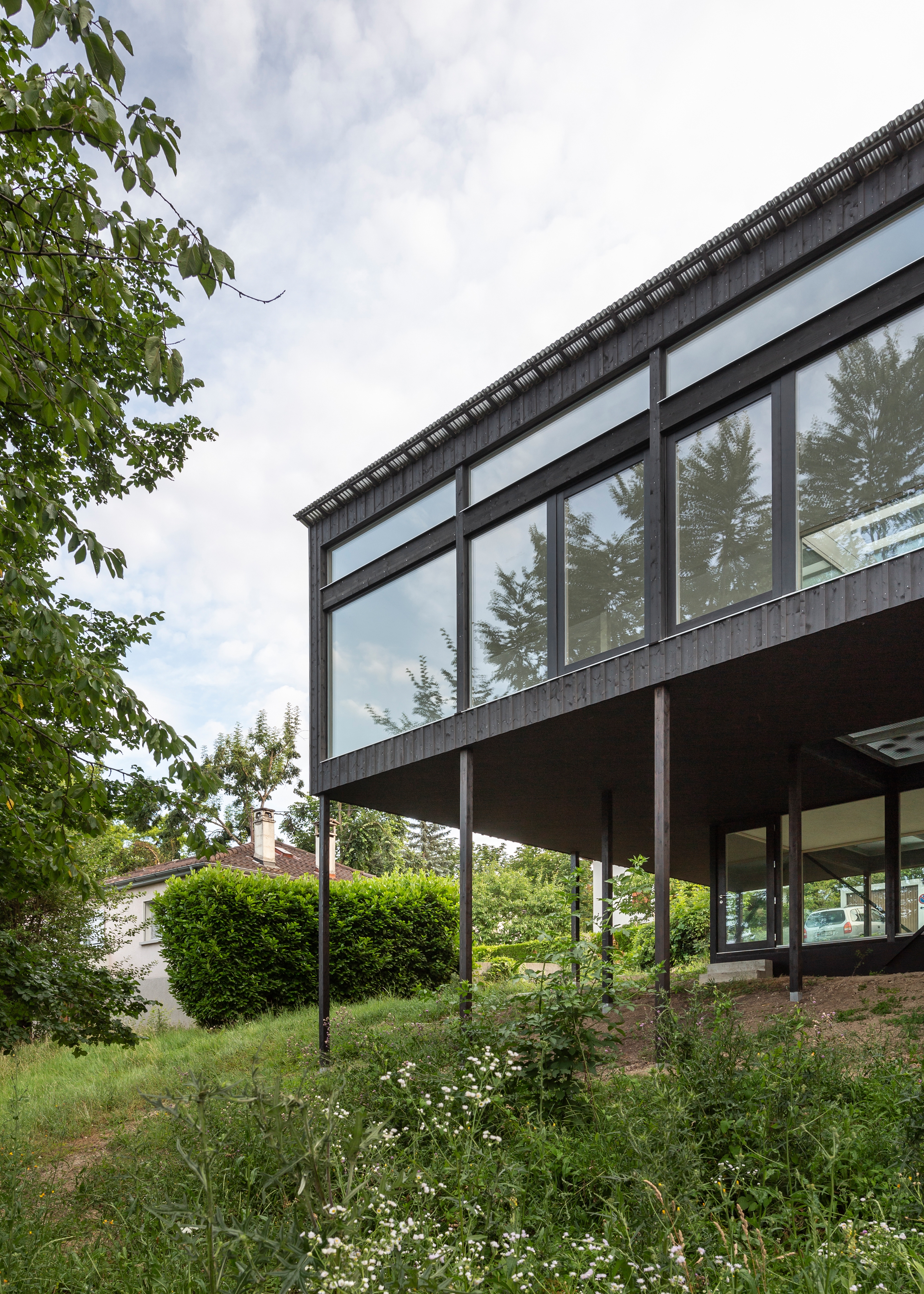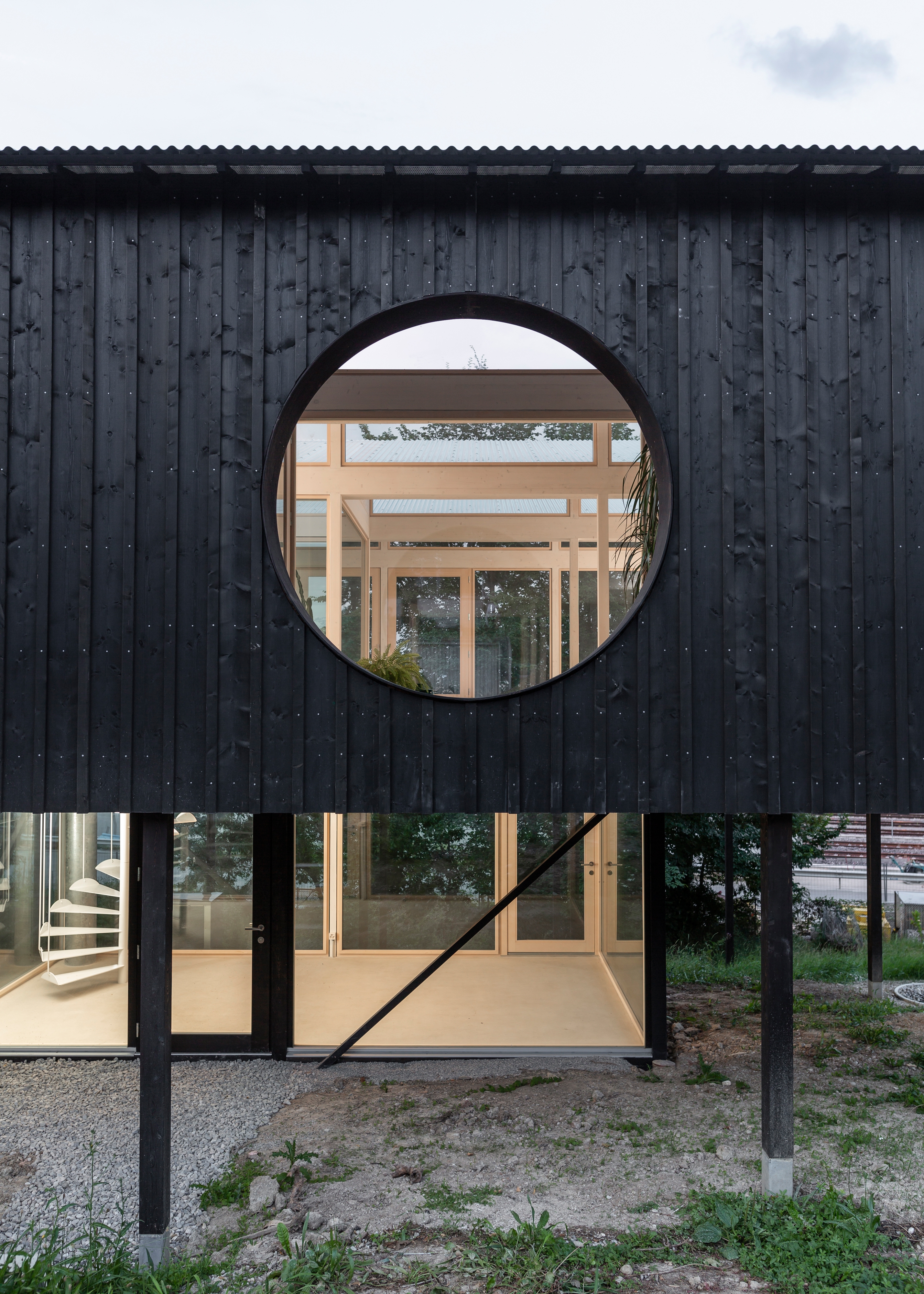 Achieving high insulation values and maximising solar gain, a small heat pump allows to avoid the use of fossil fuels. Assembled in a few days by local carpenters, the small house proposes an alternative to the archetype of swiss concrete houses often lying on heavy foundations.