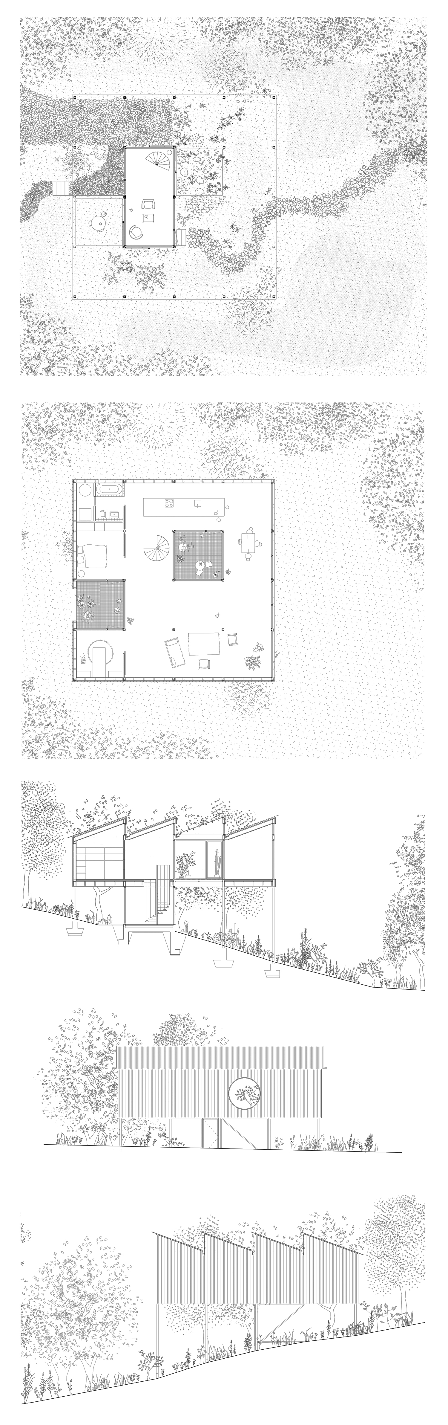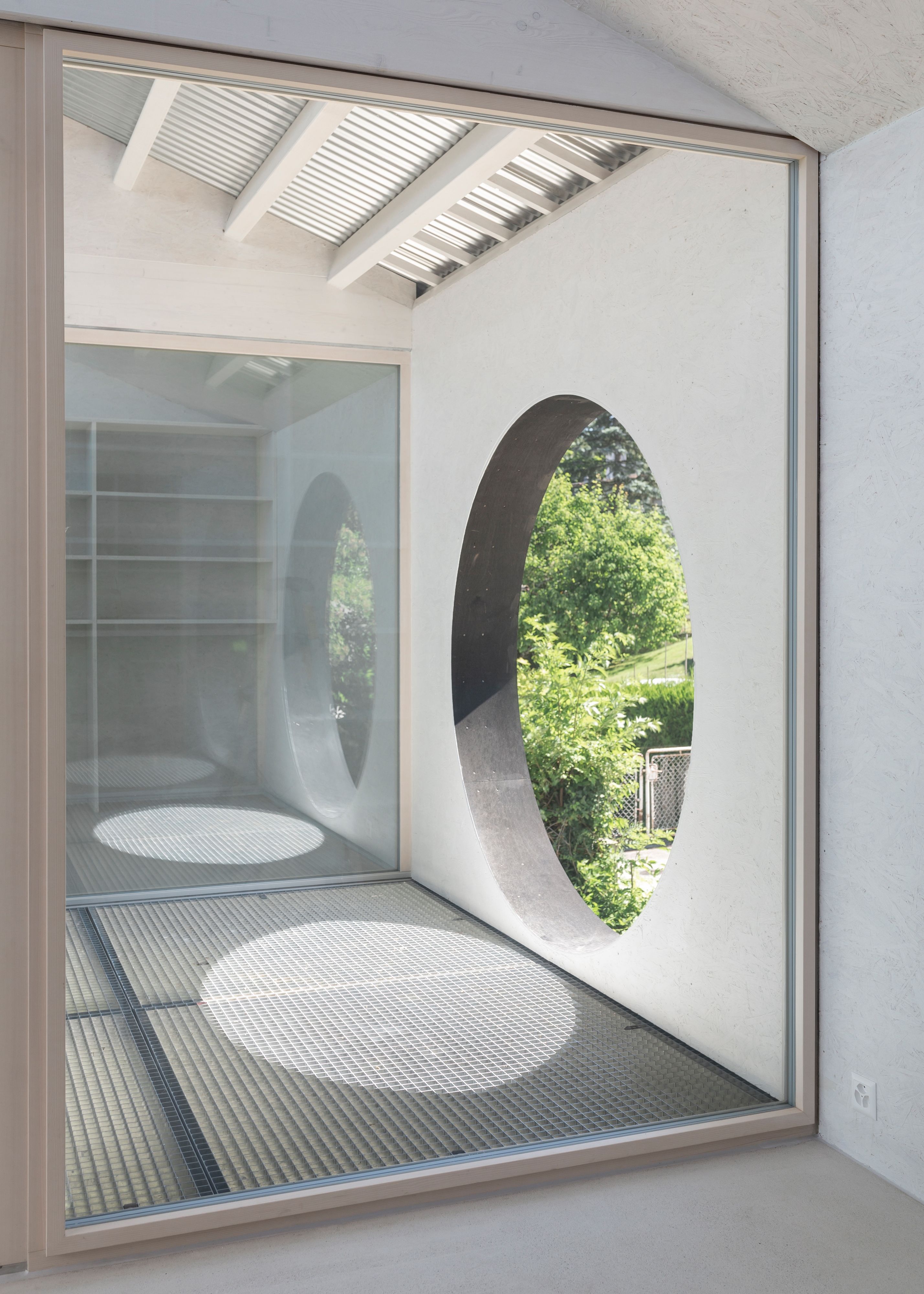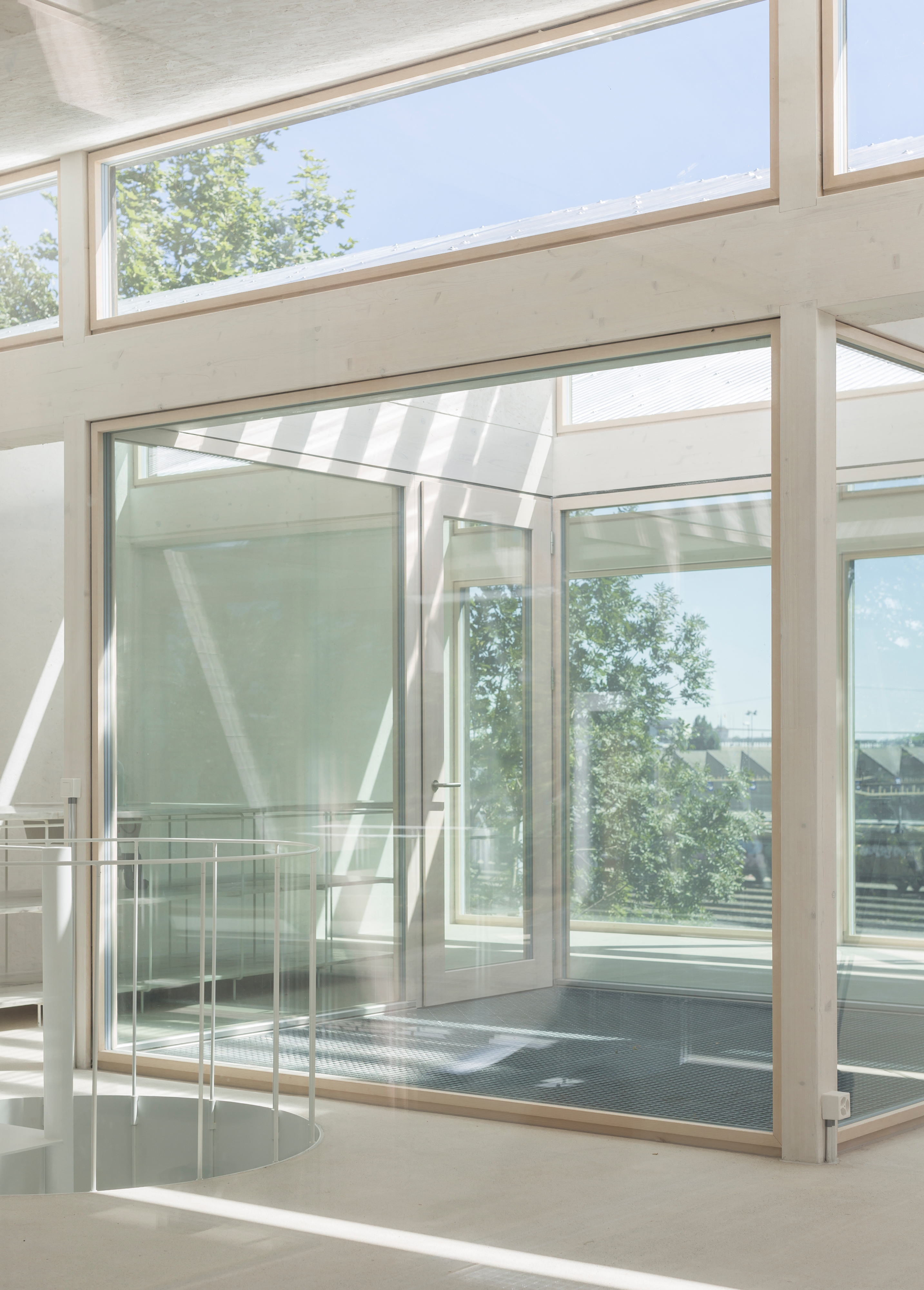 Achieving high insulation values and maximising solar gain, a small heat pump allows to avoid the use of fossil fuels. Assembled in a few days by local carpenters, the small house proposes an alternative to the archetype of swiss concrete houses often lying on heavy foundations.