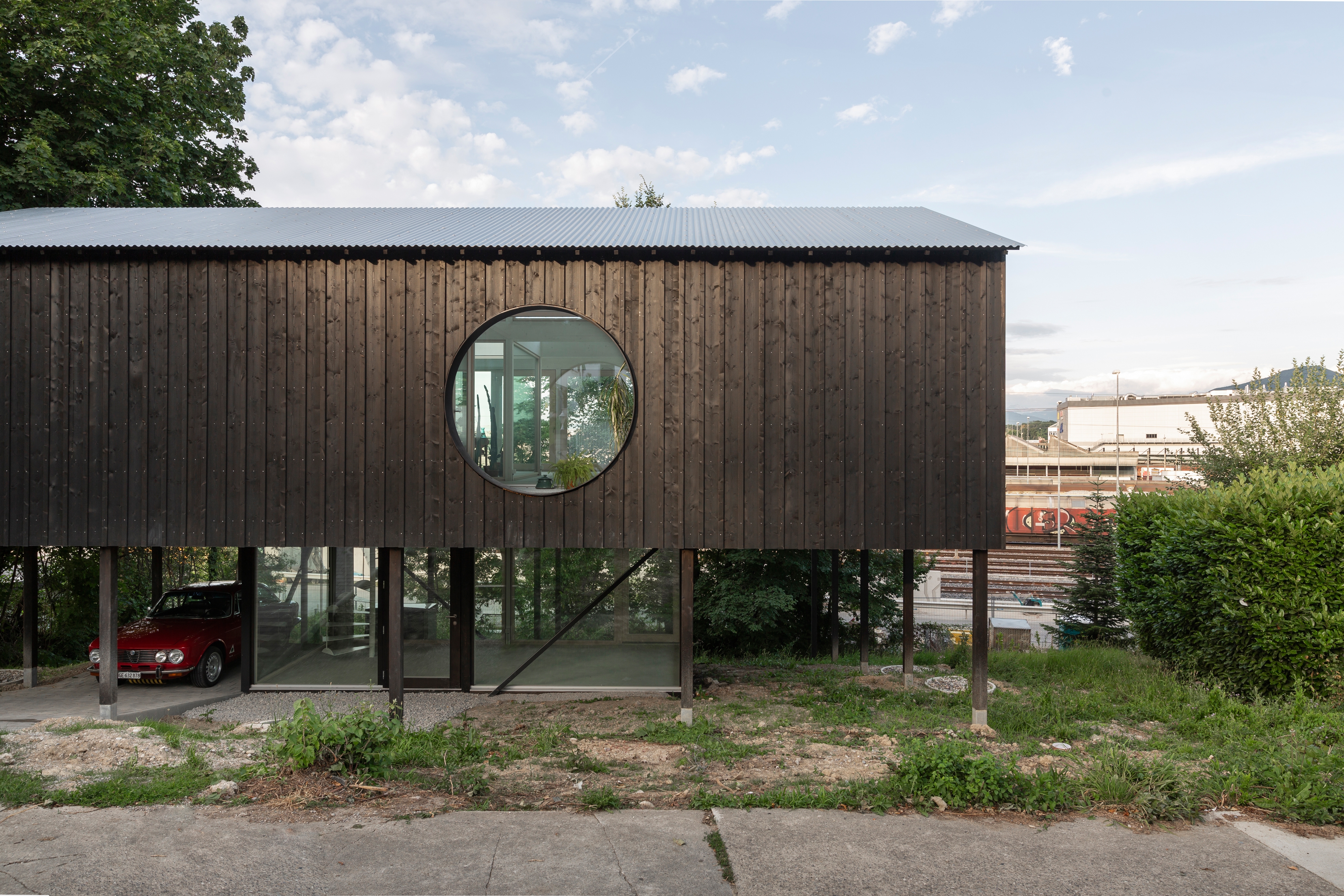Casa CCFF is an eco-friendly urban house overlooking Geneva’s industrial train station. Using economical materials and prefabrication, it reduces the construction costs to the minimum. Developed with engineer Marc Walgenwitz, the house is built almost entirely in wood, pushing the structural capacities of this natural material to its limits and reducing the use of concrete to a bare minimum.