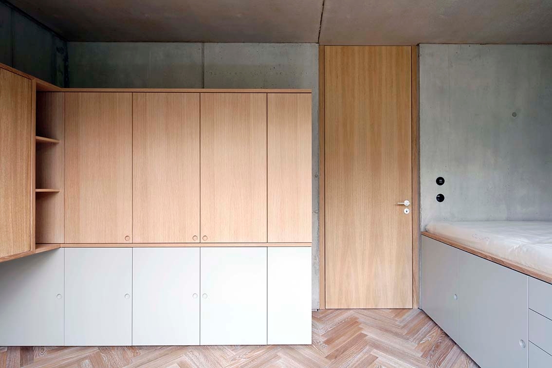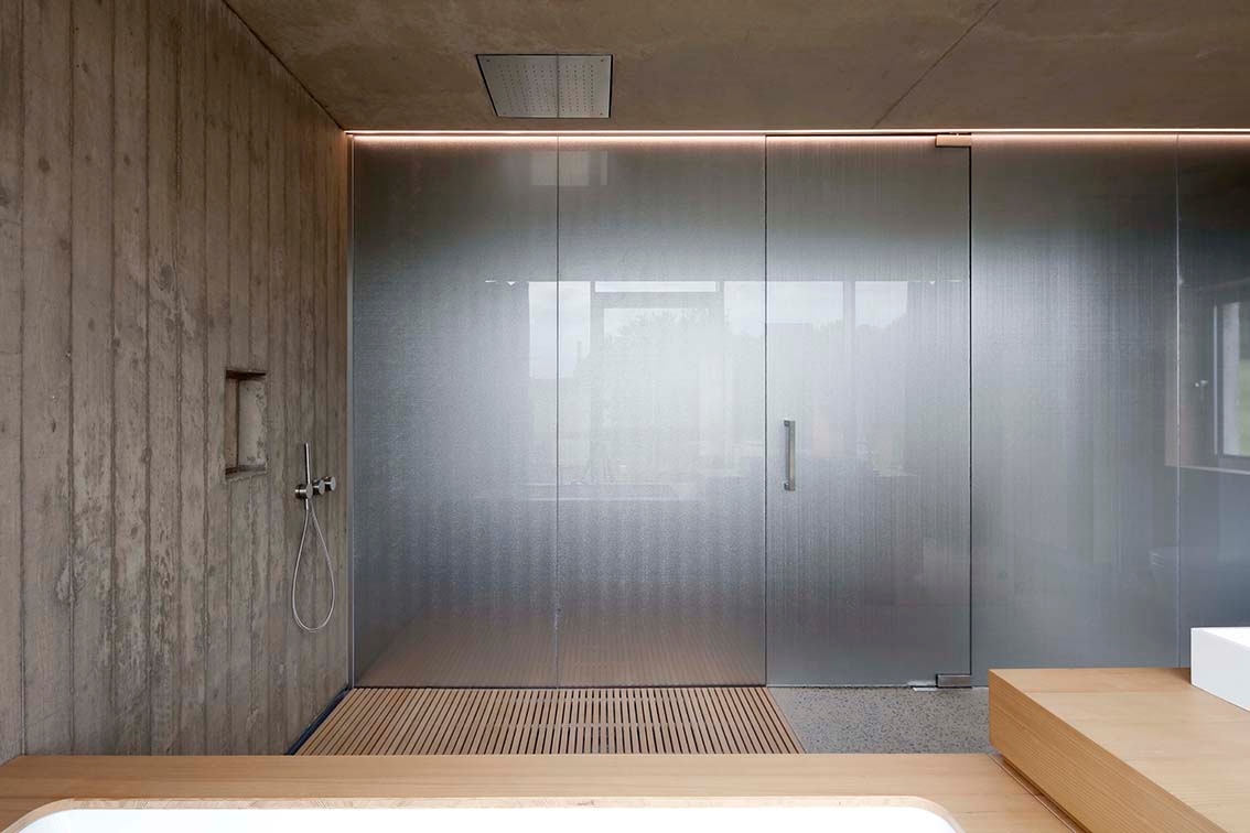 Only the main structural elements are visible, and are enhanced through the use of formwork or sanding. The resulting austerity, which is unusual for contemporary domestic standards, underlines the essence of the project: the minimal quality of the interiors fosters a relationship with the context. The design facilitates the appropriation and the application of timeless architecture by its users in their daily lives.