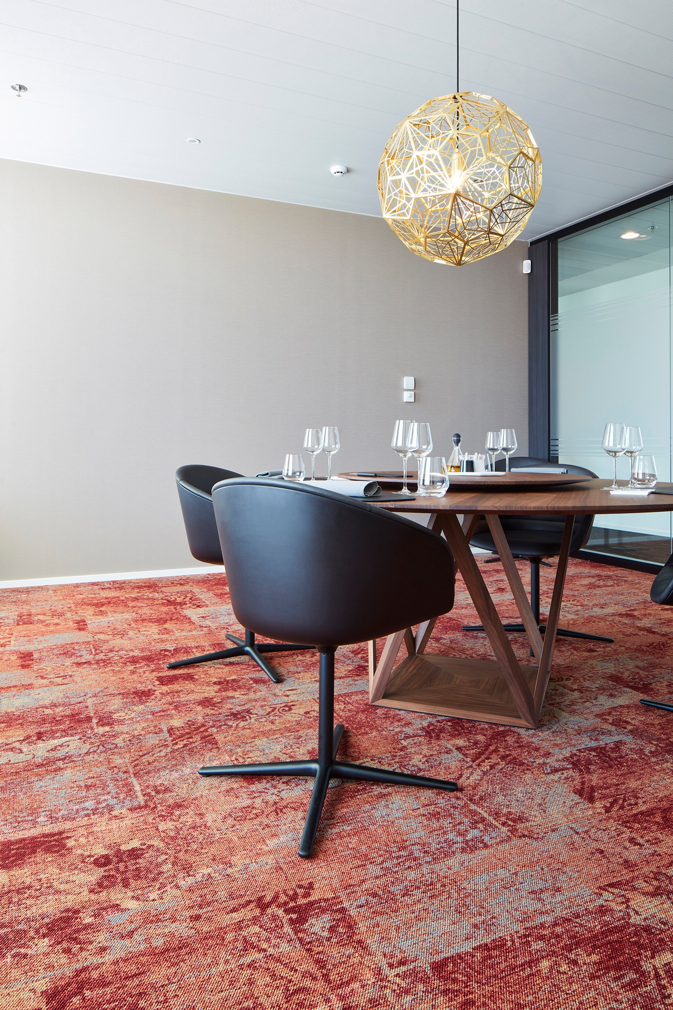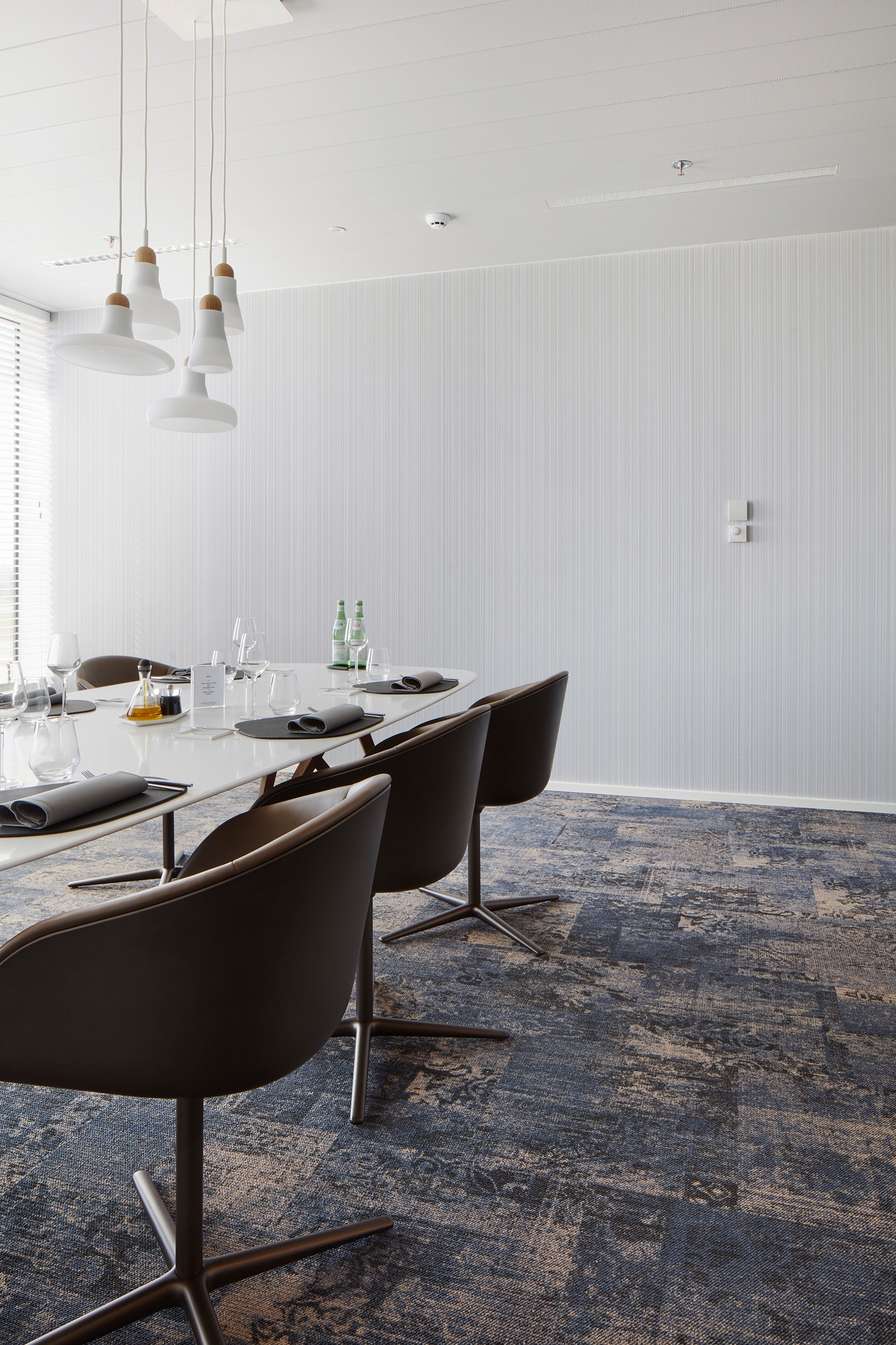 On the 4th floor, where the meeting and lounge rooms are located, KPMG wanted to do something completely different to captivate their clients. In contrast to the calm, biophilic design of Moss, Leaf and Willow, these areas were given a vintage charm with the modulyss Patchwork collection. “When we saw the samples,” Ingrid Sitters tells us, “we thought ‘wow, this is it’.” The Patchwork tiles instantly gave the interior a cosy and welcoming feel with warm and neutral tones and a quirky pattern.