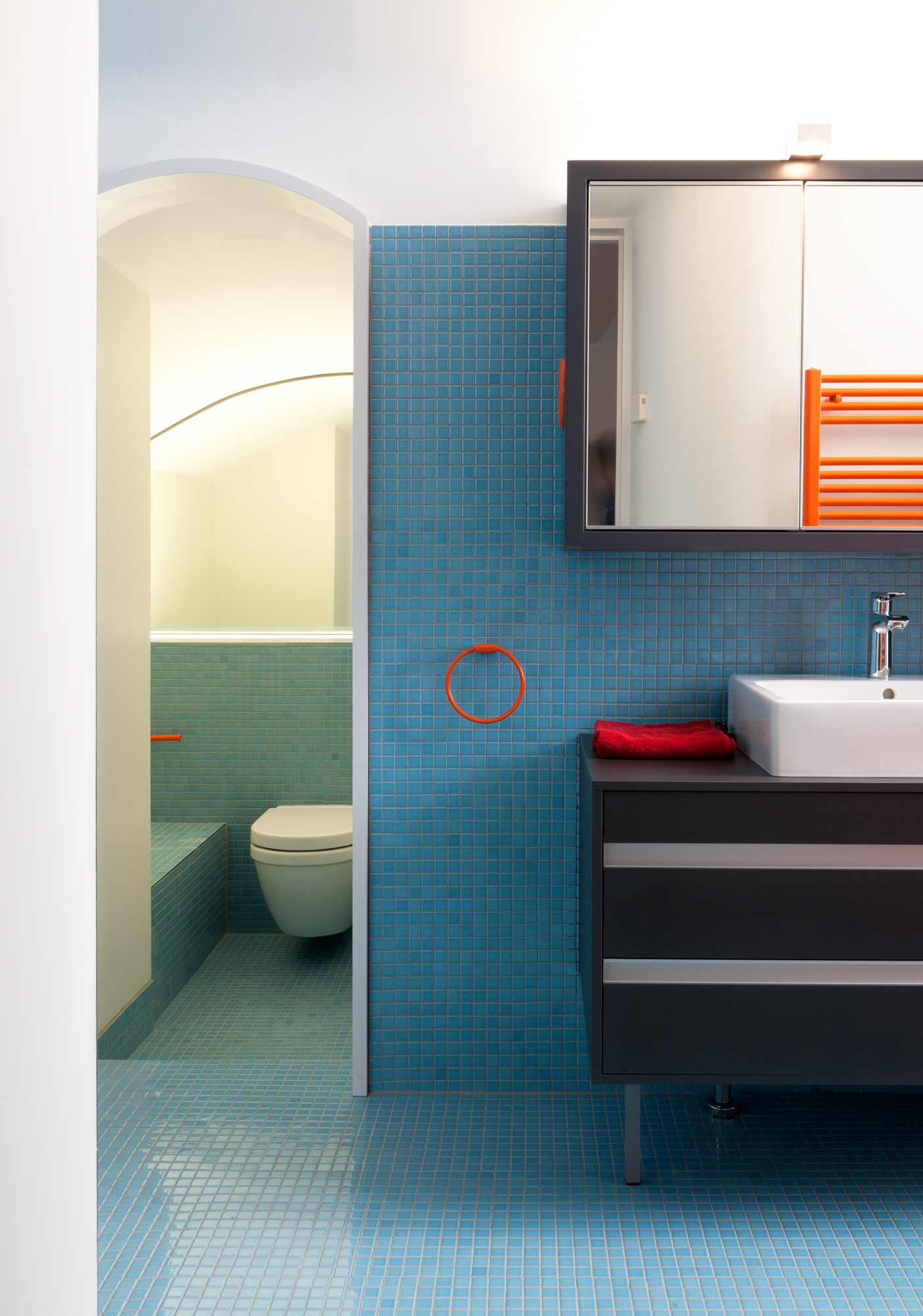 What once resembled a dripping, grimy, rabbit-warreny vaulted prison worthy of Jack Sparrow on a very bad run of luck is now a fabulous 3 Bed Maisonette. It's in a Grade 2 Star Listed Georgian terrace property (oh, the fun, the joyous fun to be had with conservation officers) in Bristol. We 'restored' the existing fabric, converting what were previously stores and garages in the rear to interior space (making them look as greek-island-glorious as we could). Newly introduced elements stand proud (literally, they are P R O U D ) of the older building, painted in bright, contrasting colours.