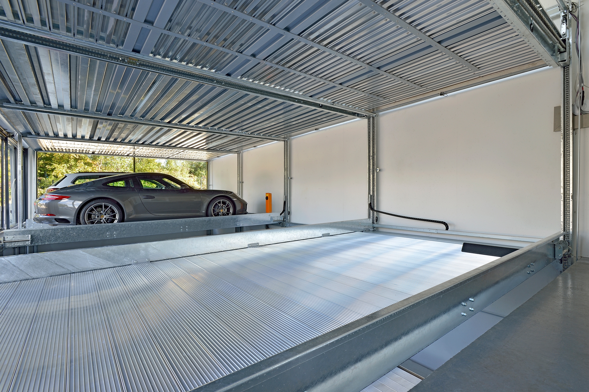 Our sales partner, klaus multiparking gmbh& co kg serves the entire Austrian market from Eugendorf (near Salzburg). Consulting for new parking systems, sales, maintenance and service – it’s all under one roof.Our new semi-automatic parking system, the TrendVario 6300 offers, here 11 parking spaces on 3 levels. On the one hand used as parking for the employees, on the other hand also as showroom for interested customers. For demonstration purposes, all 3 variants of our platform surfaces StandardGrip, EasyWalk and the high-quality AluLongLife were also installed. Customers could thus experience on site how a state-of-the-art and efficient parking system works. It was also featured on TV.