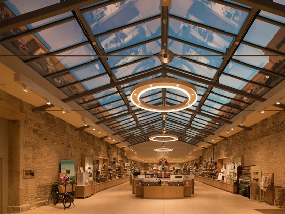 Top: Lighting design helped transform this Blenheim Palace interior into a space of retail discovery. Above: LLG's team was instrumental in giving the warehouse-like Ferrowine wine store bright shelves but a cozy shop