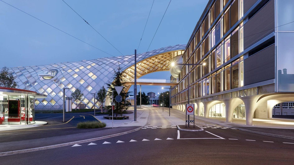With its roof structure consisting of 7700 unique pieces, the Swatch Headquarters designed by Shigeru Ban Architects in Biel is one of the largest hybrid mass timber projects in the world. Photos: Courtesy of Swatch Ltd and Reflexion
