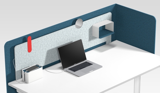 The Frame accessory line, here in perfect interplay with the Flow workstation system, offers solutions for the most diverse workplace needs. The main component is the NeoTex screen, providing privacy and improved room acoustics