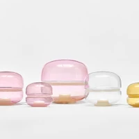 While adding colour to many materials might come at the sacrifice of translucency, glass can be coloured early on in the production process and blown or moulded into any desired shape and arrangement, resulting in retained translucency along with a built-in warmth provided by the colour itself. The pastel pink or amber hues of the Macaron lights from Brokis, for example, designed by Lucie Koldova, help the objects reach the sweetness of their namesake. Meanwhile, Tom Dixon’s Melt light uses the natural form of molten glass to fill the object – reminiscent of inner Earth or deep space – with mesmerising distortion.
