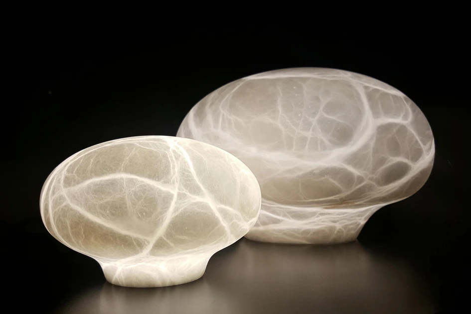 in-es.artdesign uses the specially-developed resin Nebulite® to create fibrous shadows and highlights on the T.moon lamp’s surface, lighting up the lunar apparition