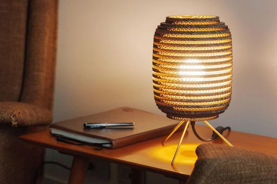 With variable translucency based on its thickness, paper makes an excellent material for diffusing interior lights. The ability to neatly cut, fold, pleat and press paper also makes it an easy material for designers to work with. The BeeHive light from LE KLINT, for example, is a refined architectural take on the traditional square paper lantern. Elsewhere, Graypants’ Ausi table lamp uses the intricate form pre-existent in reused cardboard to filter light and Laurameroni’s Novecentotrenta lamp takes advantage of the natural texture of goat parchment.