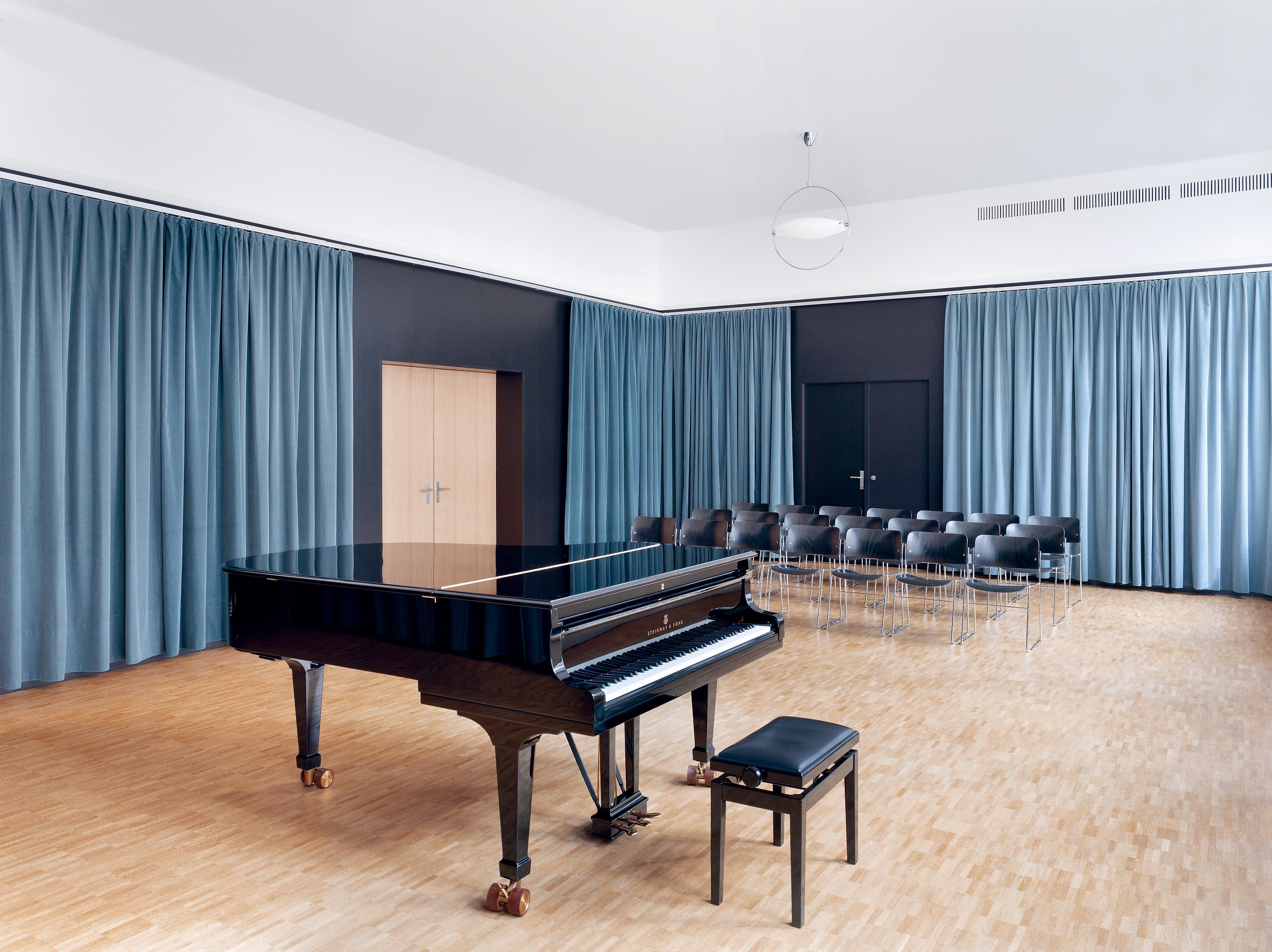 Architecturally applied textiles serve to manage both light and sound at the Bern Music School and Conservatory. Photos: Architekturfotografie Gempeler
