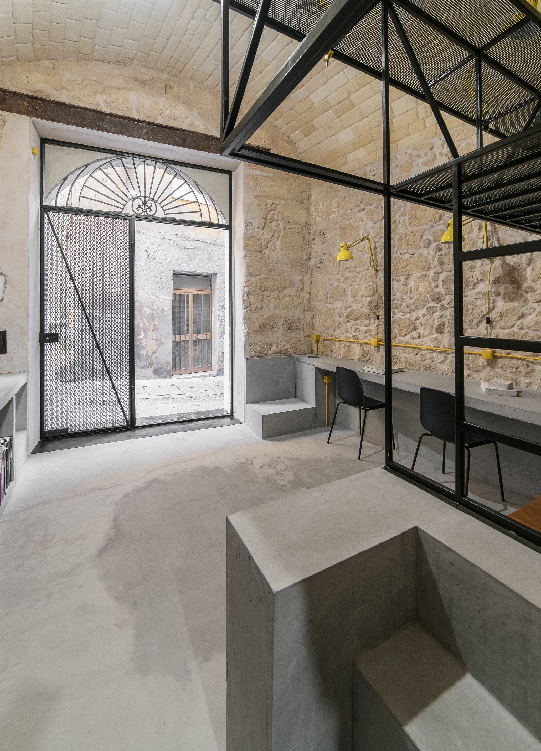 The project consist of a conversion of a small 23 m2 warehouse into an office located at the ground floor of a 18th century building in Sassari historic center.