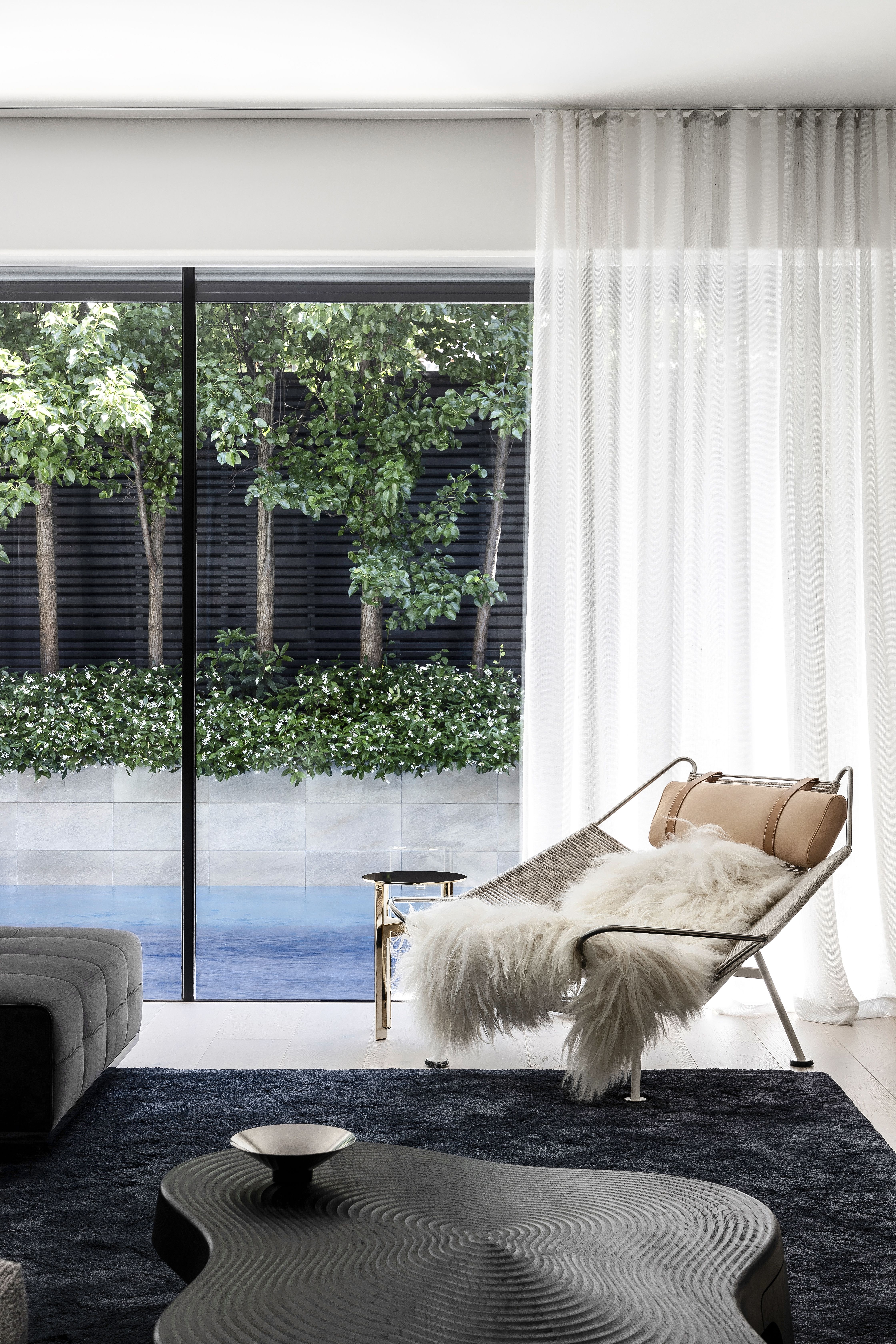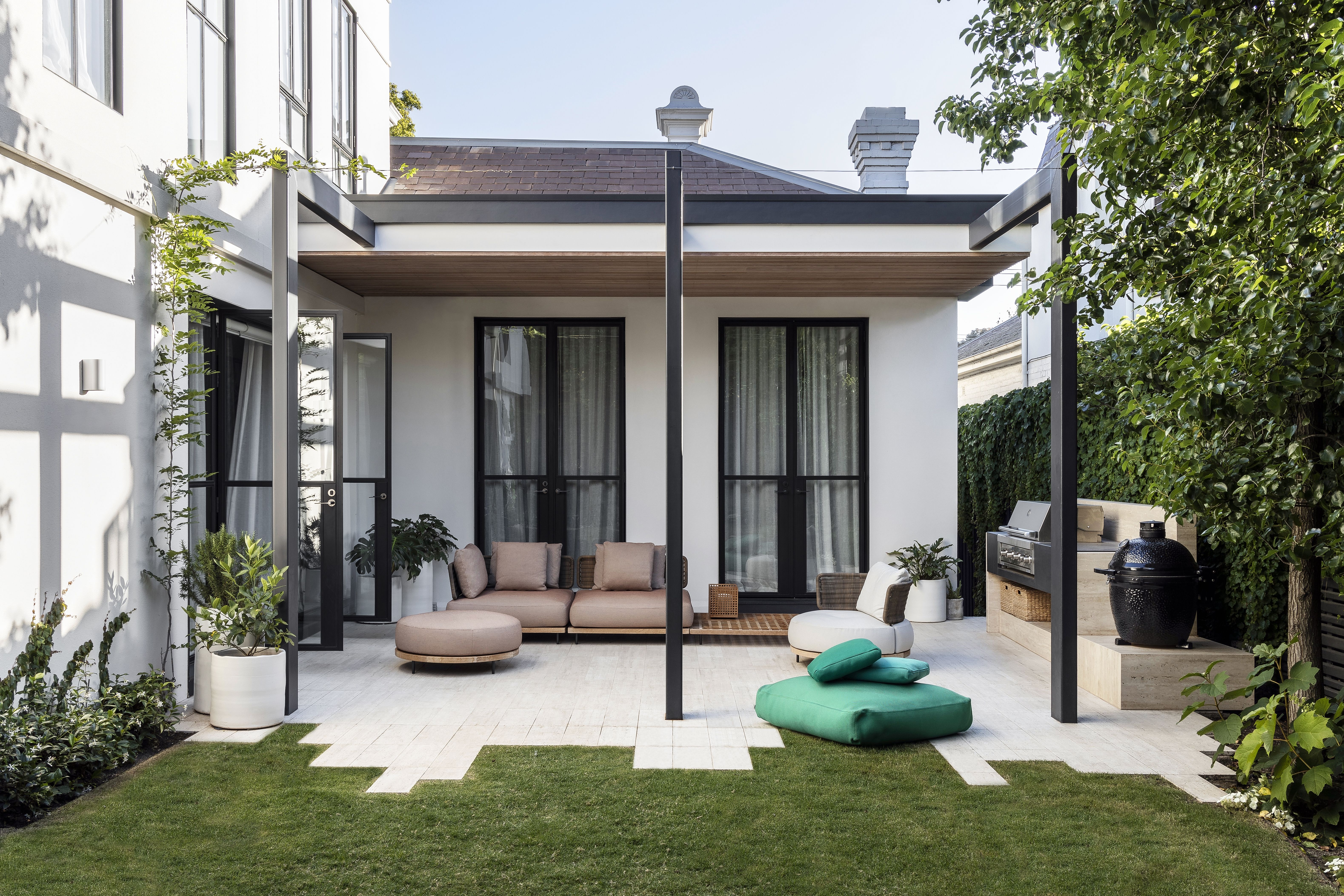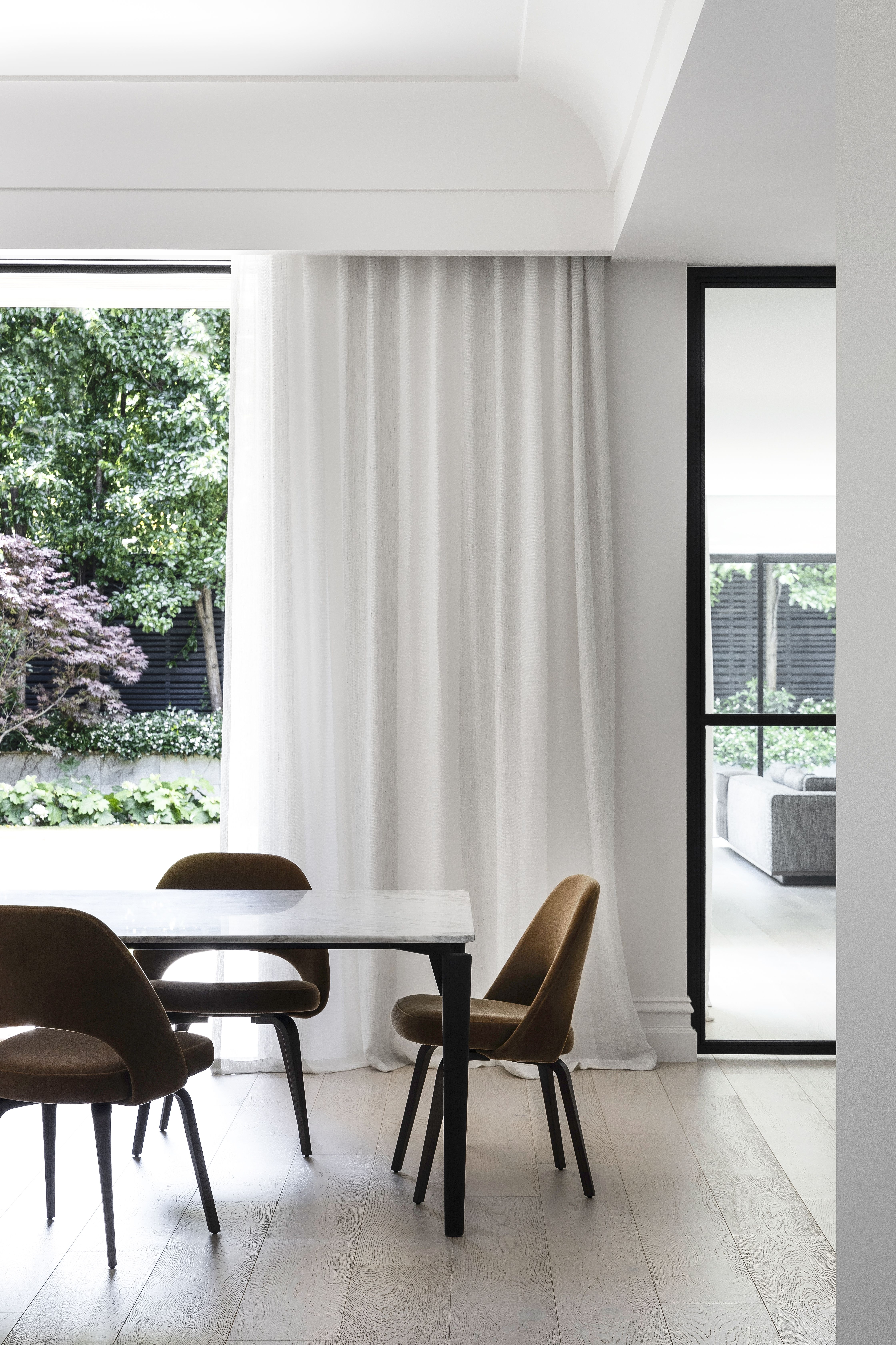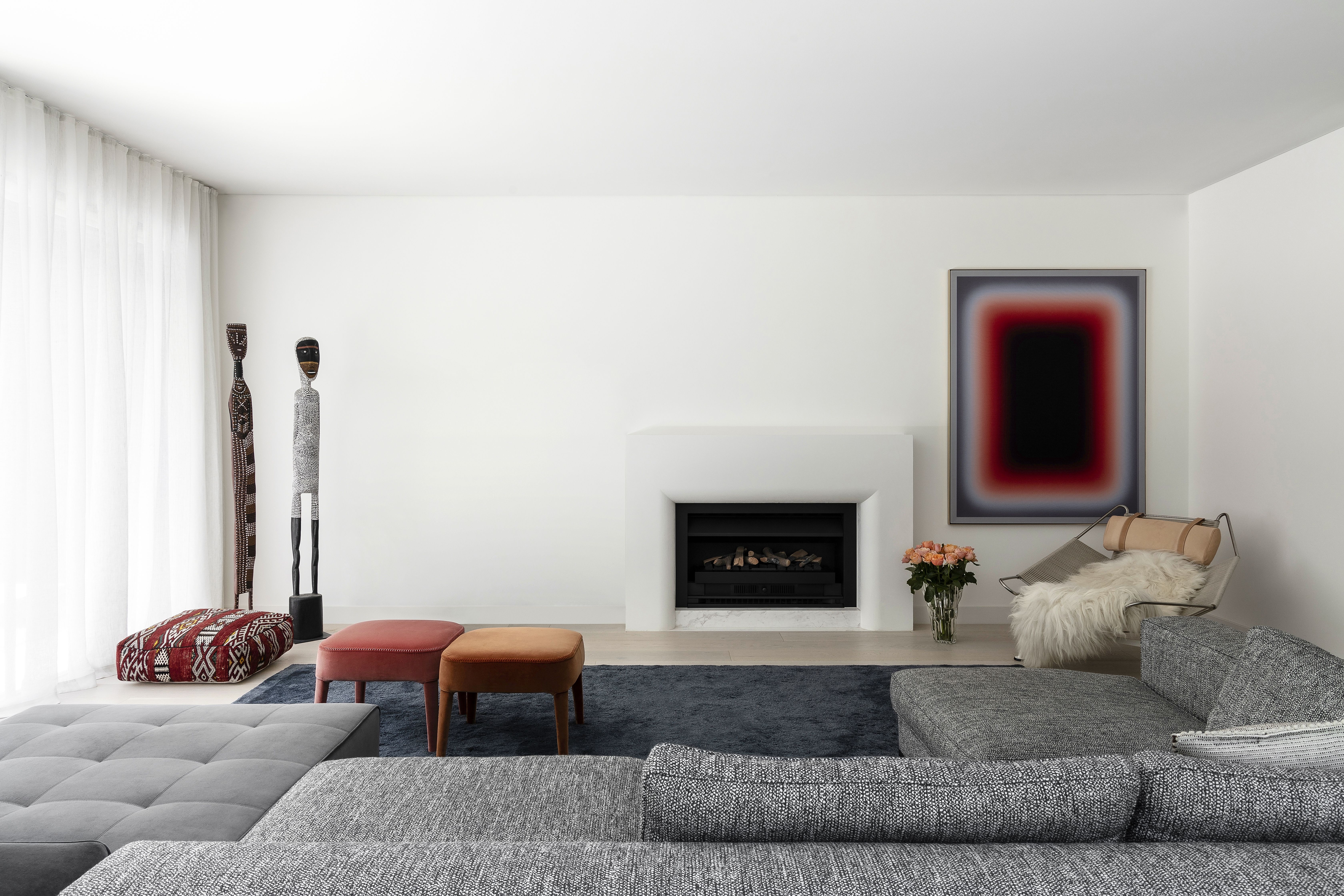 Our design approach, which is a thread running between all our projects, was to seek a balance between restraint and exuberance. The restrained base palette of pale timber floors and warm white walls and ceilings creates a background to the Paul Bangay designed garden beyond and the client’s art collection.