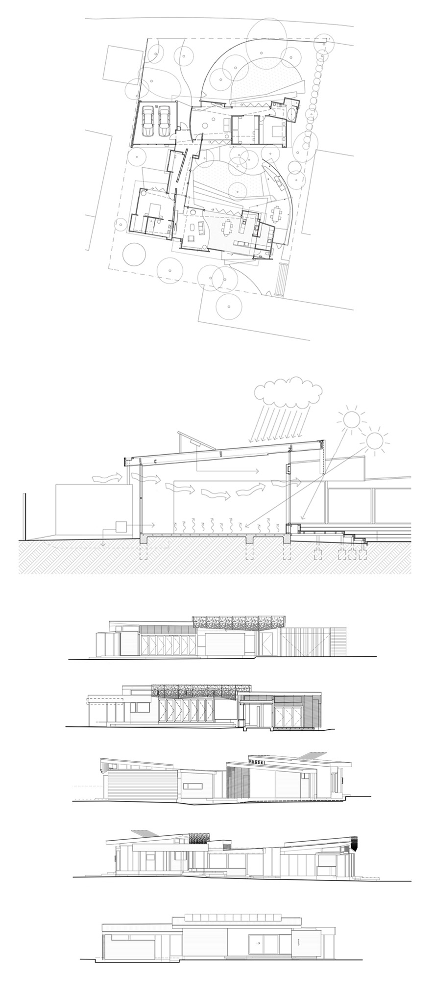 While sympathetic to its surroundings, the design of the house seeks to make use of the entire site. The single level U-shaped building steps up towards the rear of the block following the gentle slope of the land. An integrated landscape solution helps to create a series of indoor and outdoor spaces.