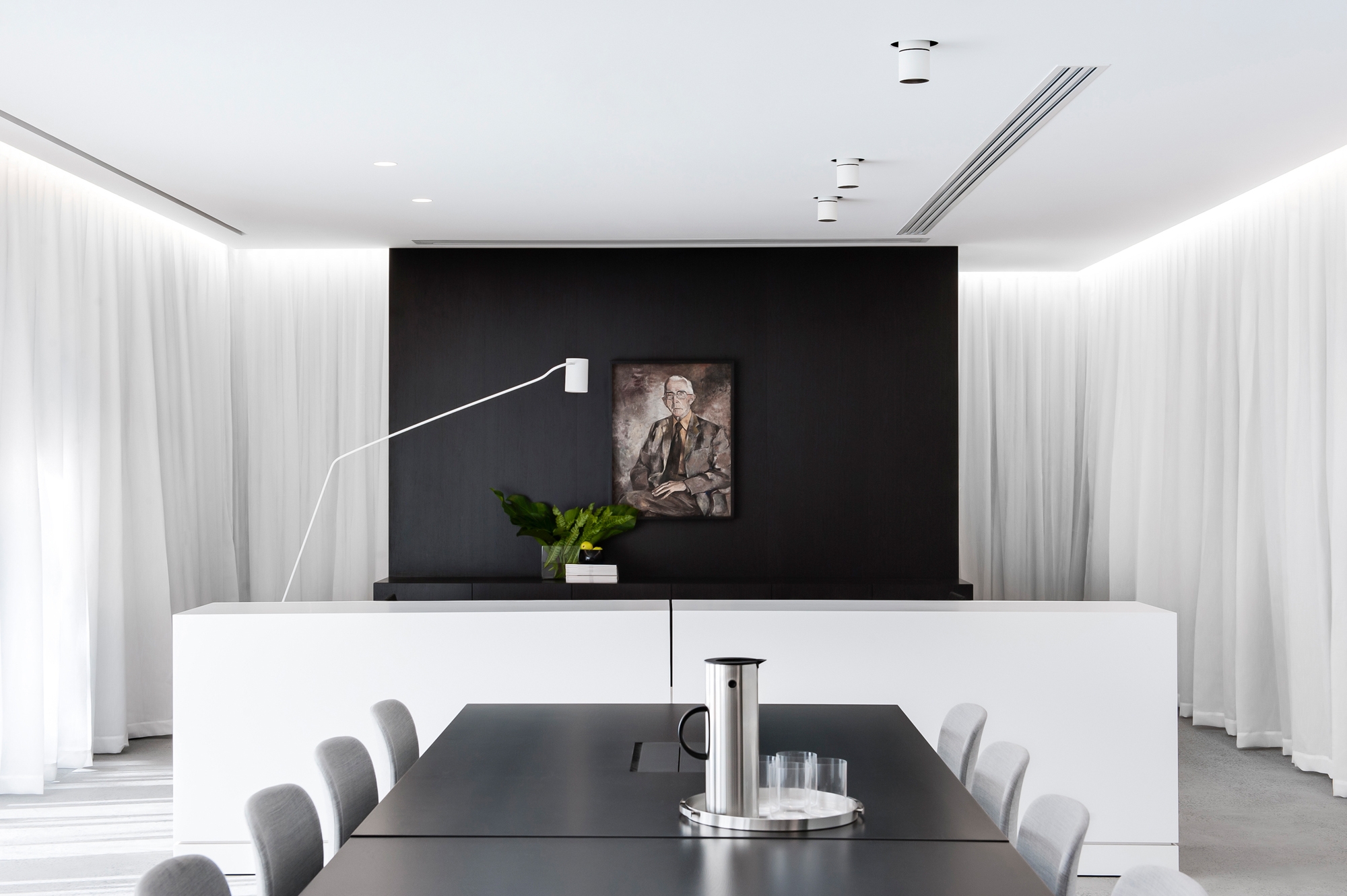 Showrooms and food preparation areas can be easily changed to seminar and function spaces adding flexibility to the work place. Furniture folds away, display benches and shelving are mobile. The flexibility of the work place is further supported by an intelligent audio visual system.
