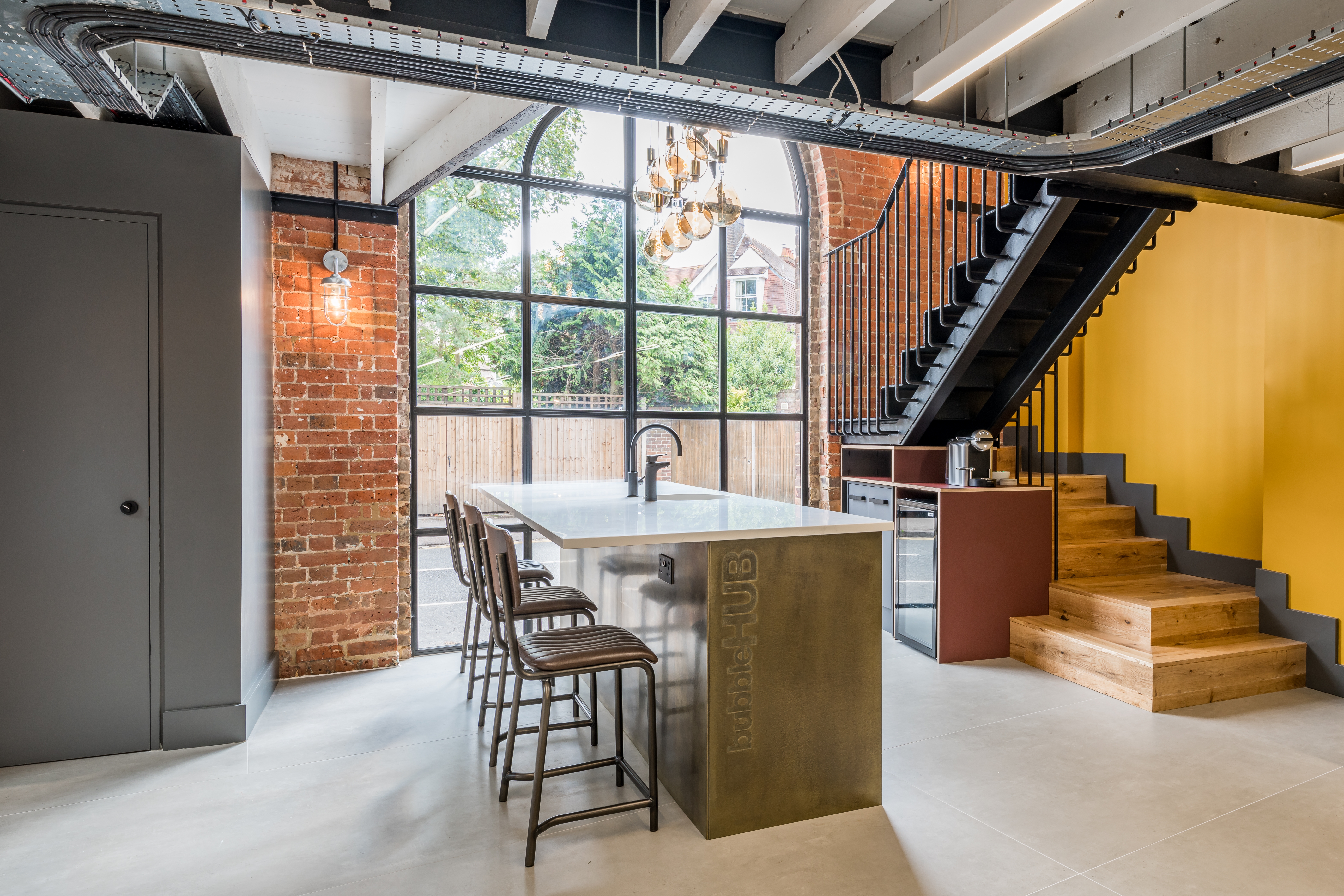 Workspace designers and strategists align have completed a striking, two-storey, co-working space for new operator bubbleHUB, located within a characterful former pump house building in the centre of St Albans. bubbleHUB co-founders Benn Latham and Harry Dougall briefed align to help create a ‘unique and aspirational’ space, which was to be unlike anything else currently available in the St Albans area.