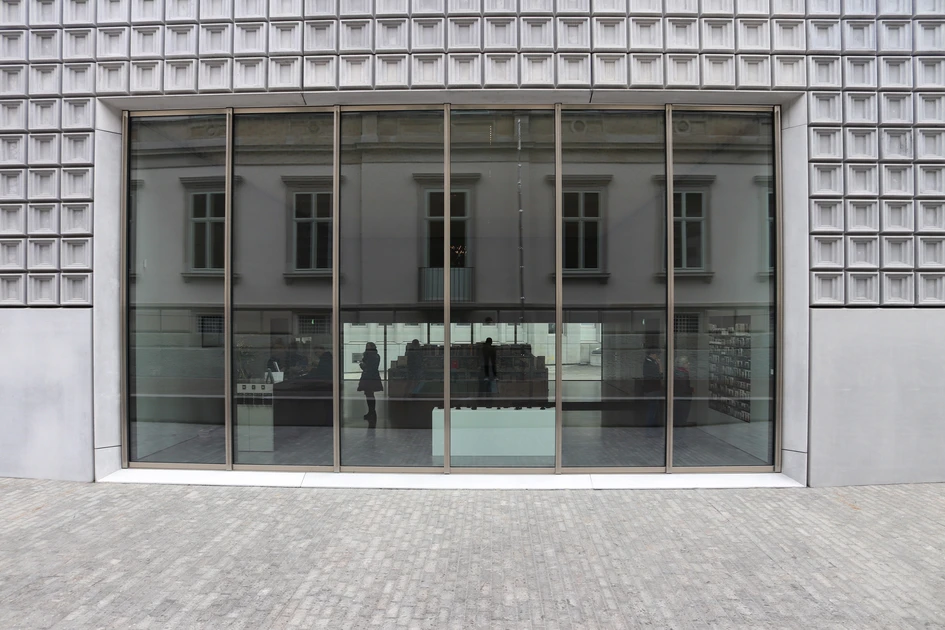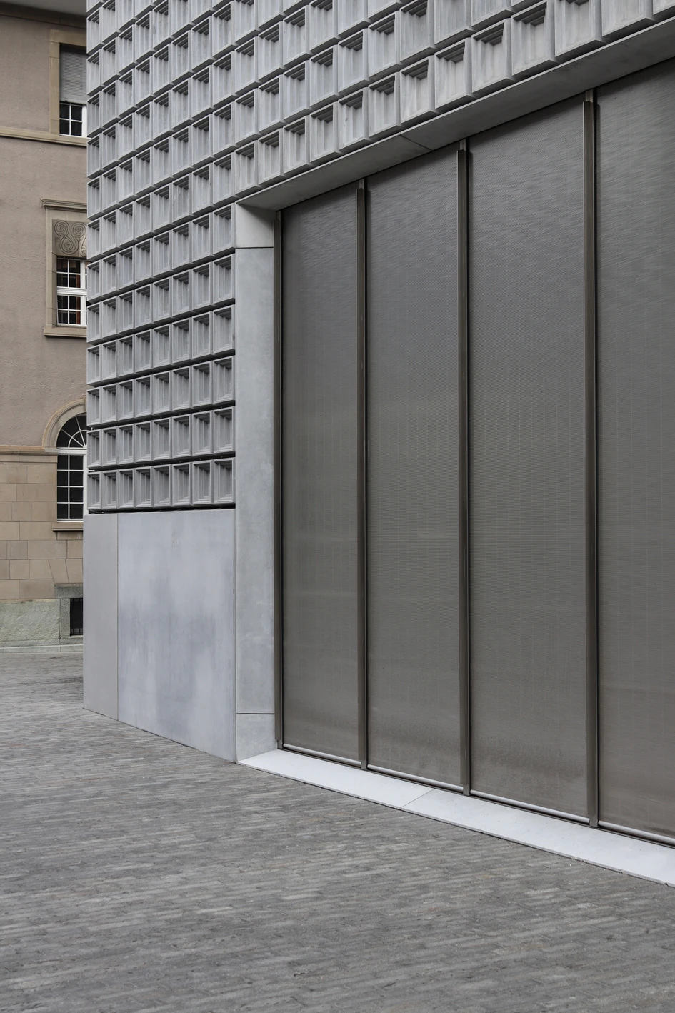 Das neue Museum besticht durch seine klare Form und die präzise Setzung im Kontext zur Villa Planta und dem Verwaltungsgebäude der Rhätischen Bahn. Die knapp gehaltene, kompakte oberirdische Volumetrie unterstreicht – auch mit der symmetrisch gegliederten Fassade – die Eigenständigkeit aber auch die respektvolle Haltung gegenüber der wertvollen Villa im Garten und dem benachbarten Gebäude. Durch die raumhohe Verglasung nach Westen zeigt sich die Villa Planta gleichsam als Bild, als Kunstwerk, in einem Rahmen. Im oberirdisch würfelförmig in Erscheinung tretenden Baukörper liegen der Projektraum, die Kunstvermittlung und die Museumstechnik – alle Räume mit Tageslicht. Erst in den Untergeschossen zeigt das Museum seine wahren Dimensionen.