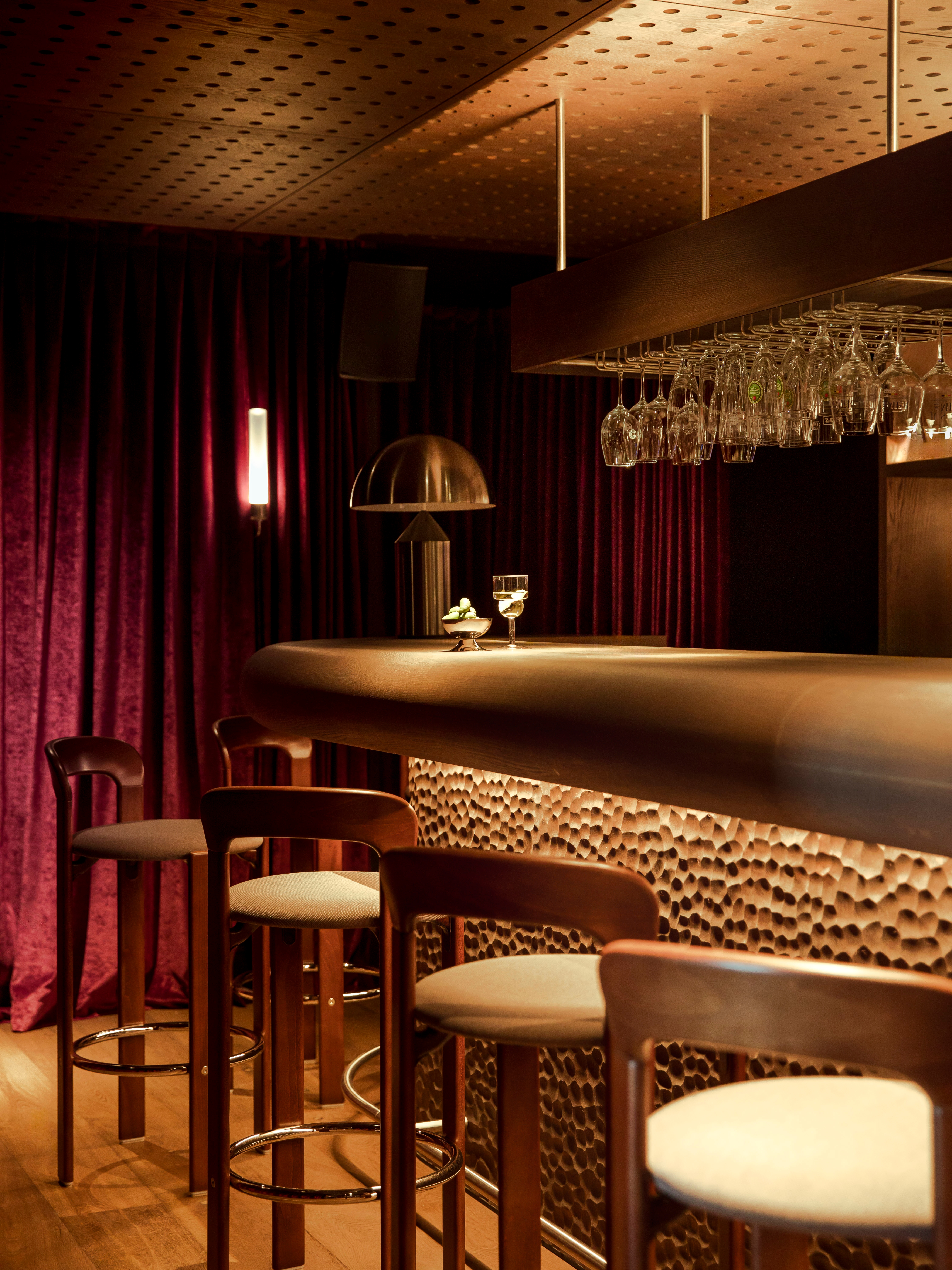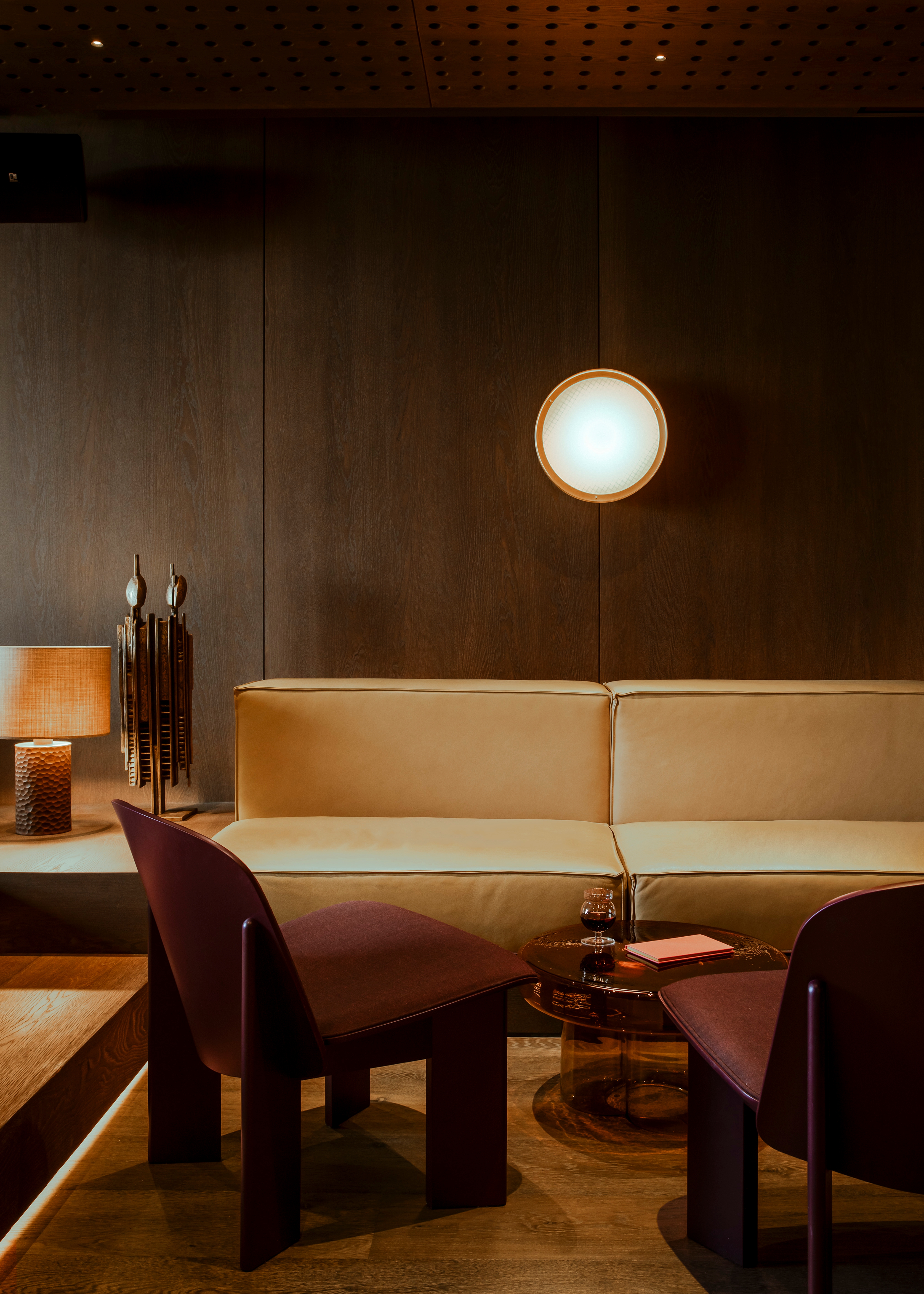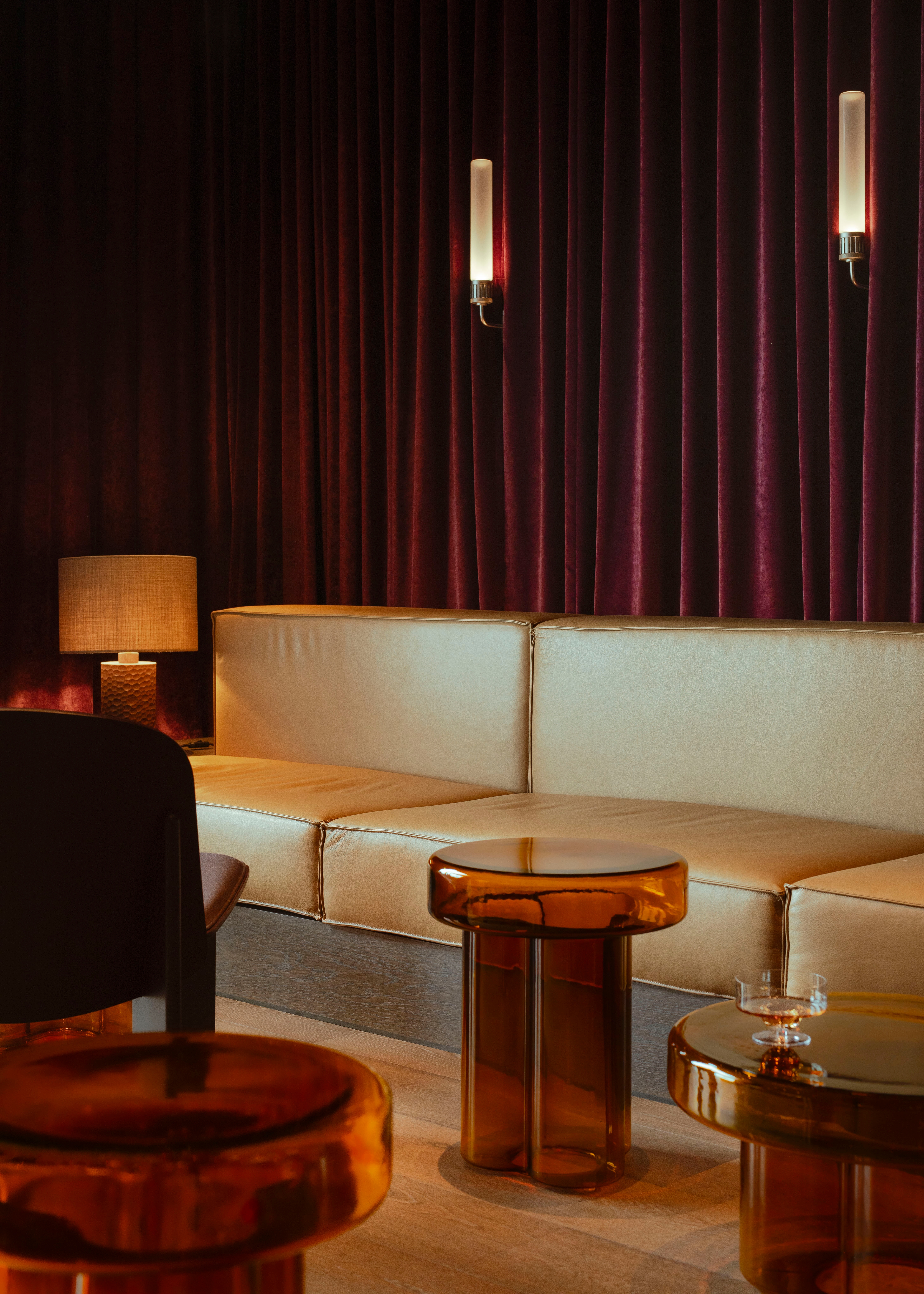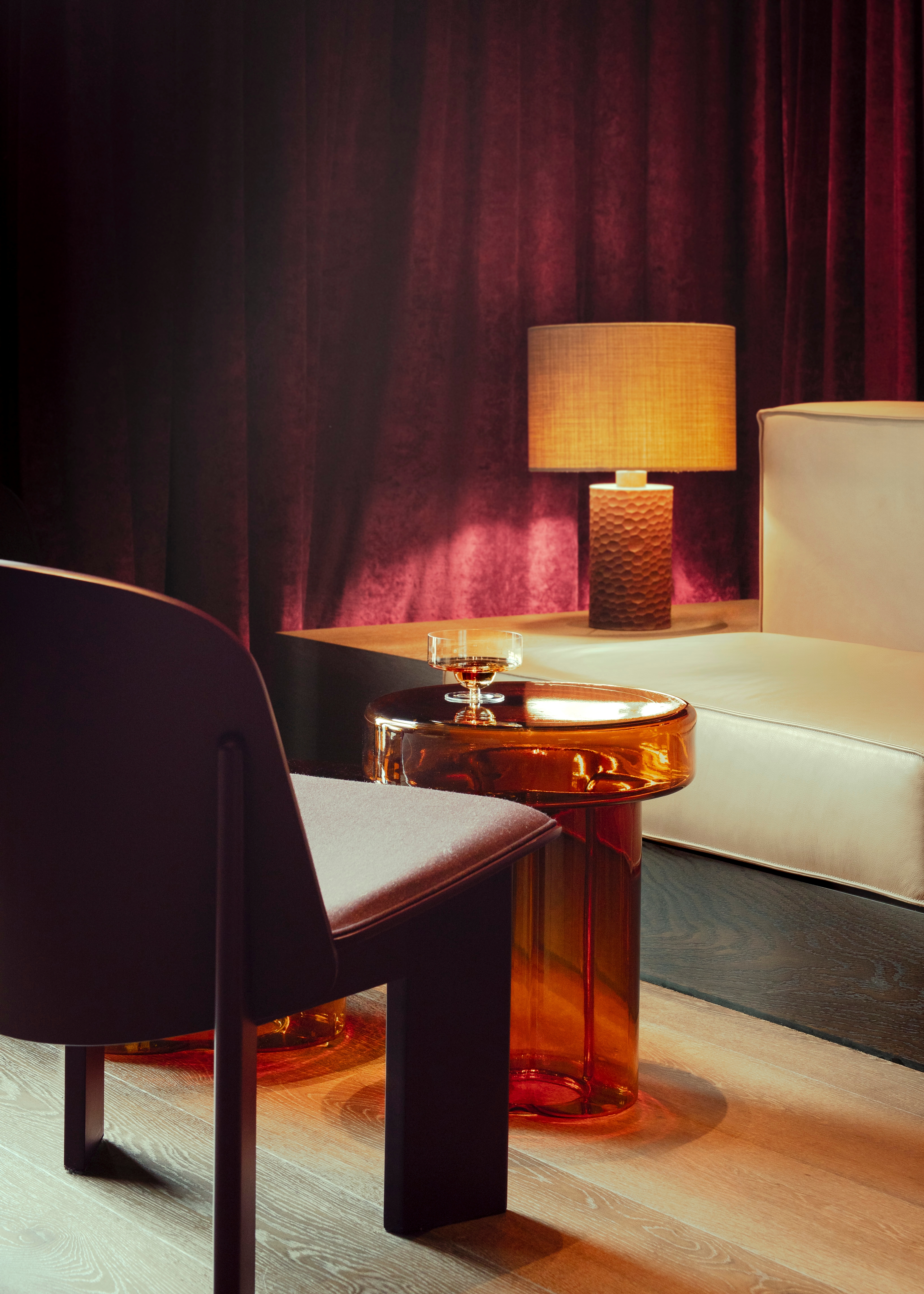 For the transformation of C-Bar, TJIP interior designers were inspired by the Japanese music bar. Music may only play an accompanying role there, but visually the link is clear. A special feature in that respect is how the bar and table lamps, inspired by Japanese woodcarving techniques, were hand-shaped by Belgian craftsmen into eye-catchers of the interior. Furthermore, the interior design team opted for a concept of low and loose seating. The lounge feel is complete with designer tub chairs by HAY and colourful transparent tables by Miniforms that can be moved at will. The convivial atmosphere in C-Bar is also the result of choosing natural materials that show off their patina over time, organic shapes that run like a thread through the interior and a well-conceived lighting plan, which decreases in intensity as the day goes by. Seven days a week and from 11am to midnight, C-Bar is the place to go for a nice glass of wine, a cocktail or your favourite local beer.
