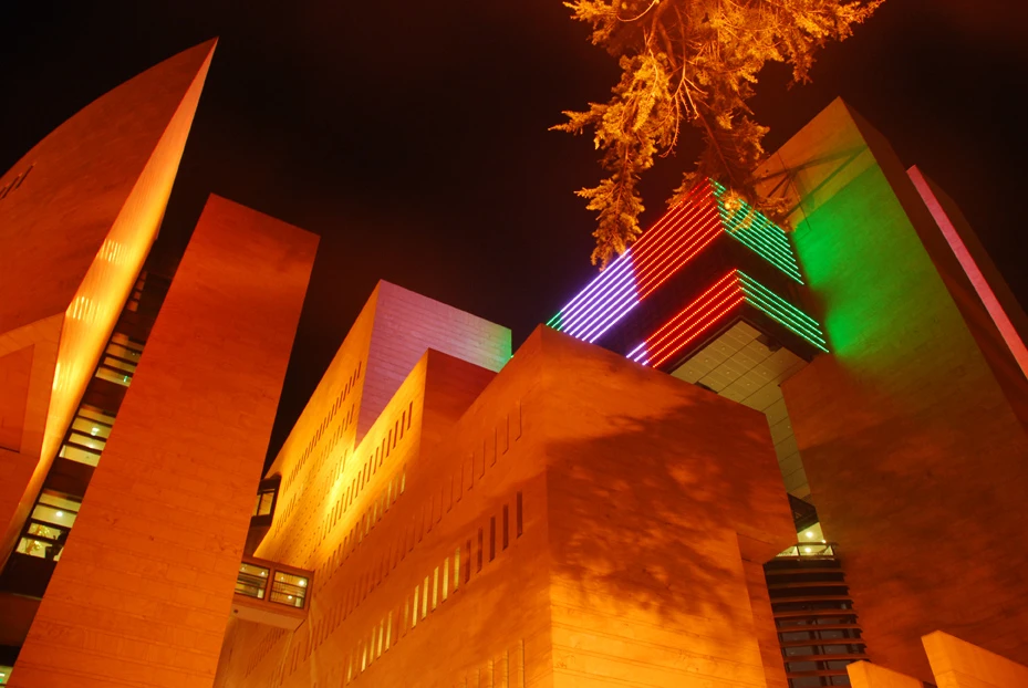 Light is employed as a means of expression and local communication. Each recurrence for the city is related to a specific light setting so the Casino, with its variations in tones and intensity, follows the passing of weeks, seasons and events. It is a lighting connected to the travel, to the dream which seems to allude to another world made of magic, game, fun, and at the same time turns the big structure in a metronome, a calendar of the urban light that marks the passing time.