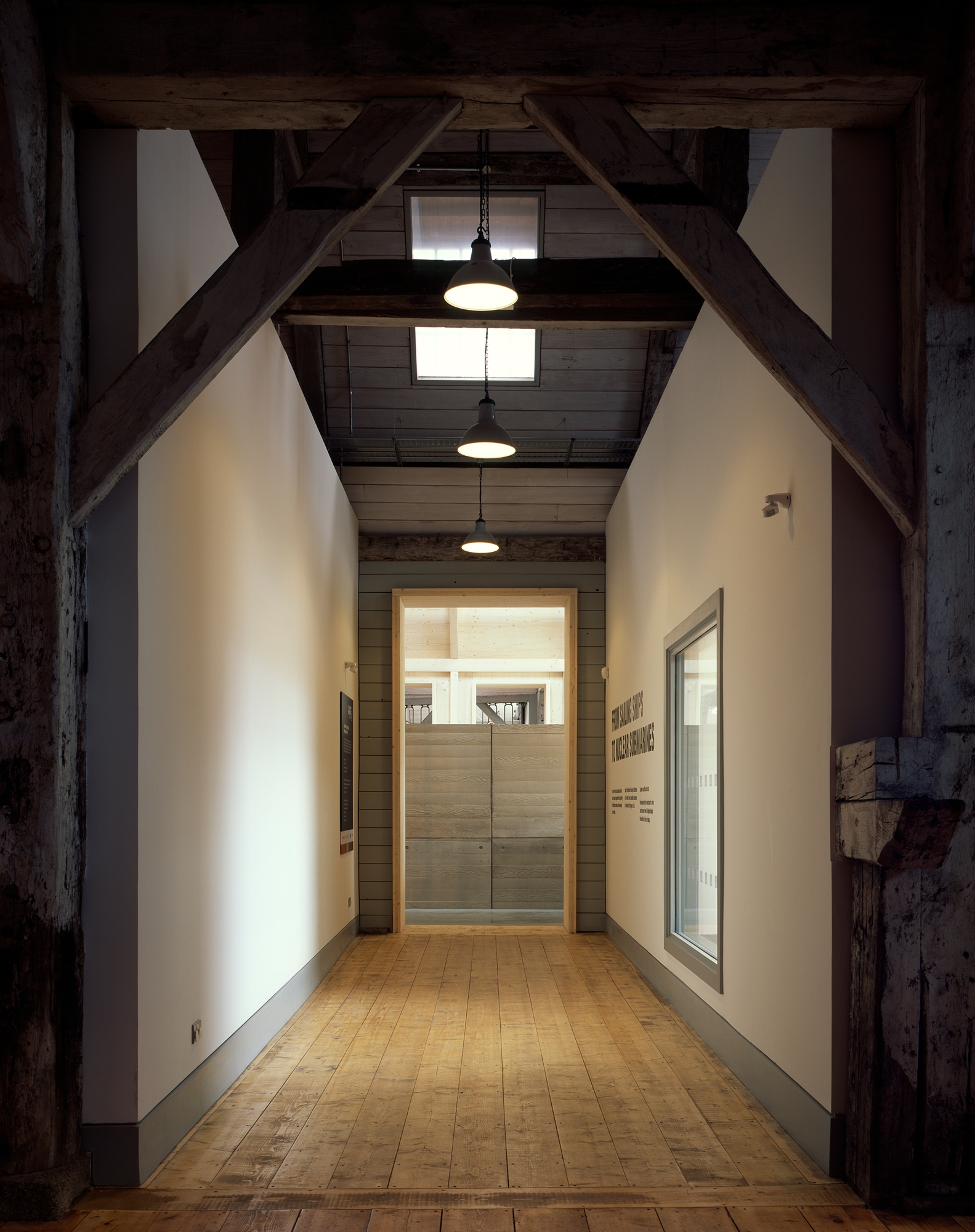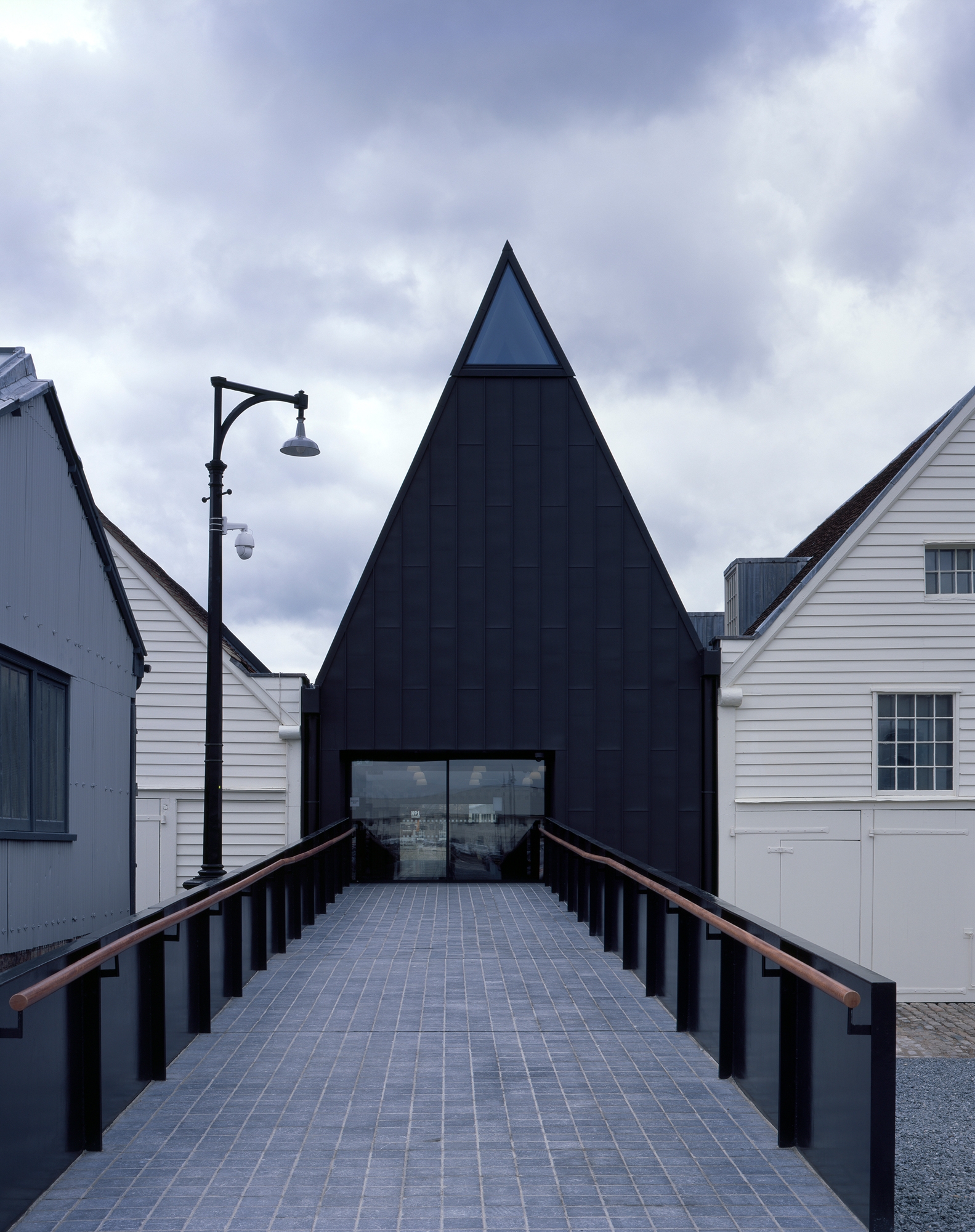 A small palette of materials, mainly consisting of black metal, black limestone, board-marked concrete and composite timber have been used throughout the project - materials which respond robustly to the strong, industrial language of the existing Dockyard buildings and landscape. Complex works on site included archaeological excavations, underpinning the existing historic structure and the installation of a temporary floor suspended from the original structure to protect the historic timbers. The £9m project was funded with support from the Heritage Lottery Fund, the Homes and Communities Agency, and other individuals, Trusts and Foundations.
