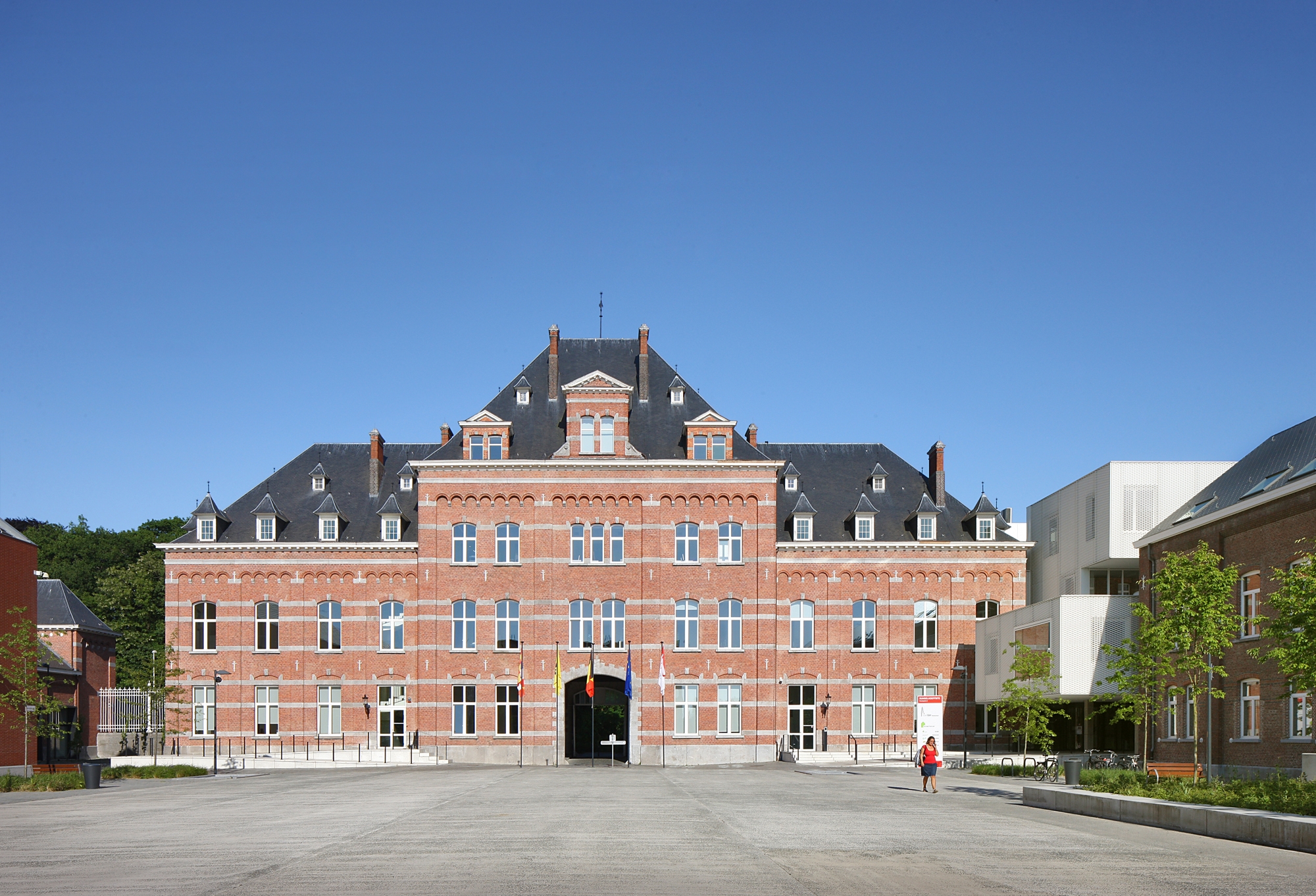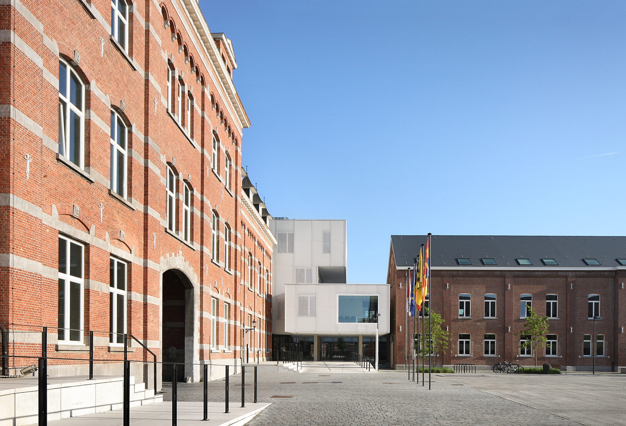 The city administration building, located within the ramparts enclosing the historic inner city of Lier, is a key element in present and future city development. With just one targeted intervention, the design for the city administration building safeguards the characteristic, iconic appearance of the existing volume and unequivocally emphasises the functional change of the building. A new low threshold volume is judiciously positioned: on the one hand it serves as a signifier of the city administration office location, on the other hand its modest, respectable shape ensures that the existing heritage site is optimally safeguarded. This intervention accommodates and provides access to all the public areas of the city administration premises. Reception, wayfinding and orientation of citizens and employees have been organised as transparently as possible, both internally within the site and outside, with regard to the wider surroundings.