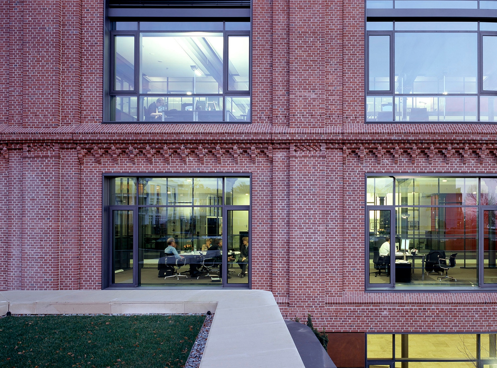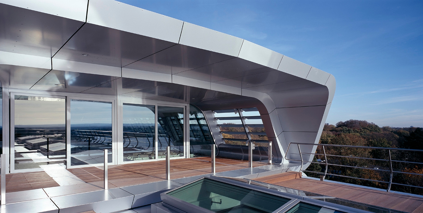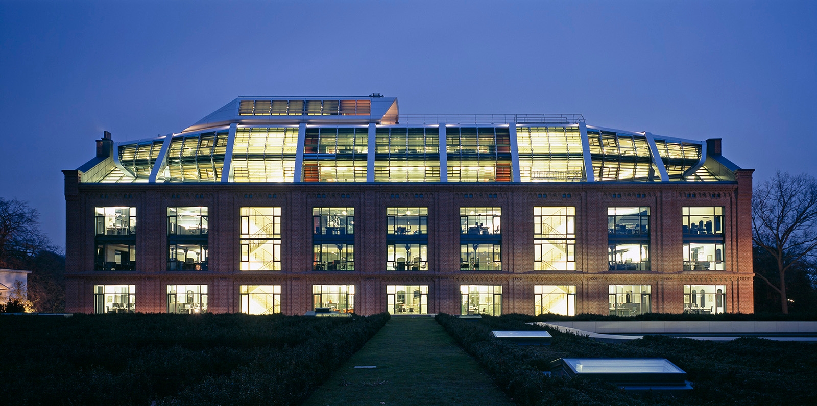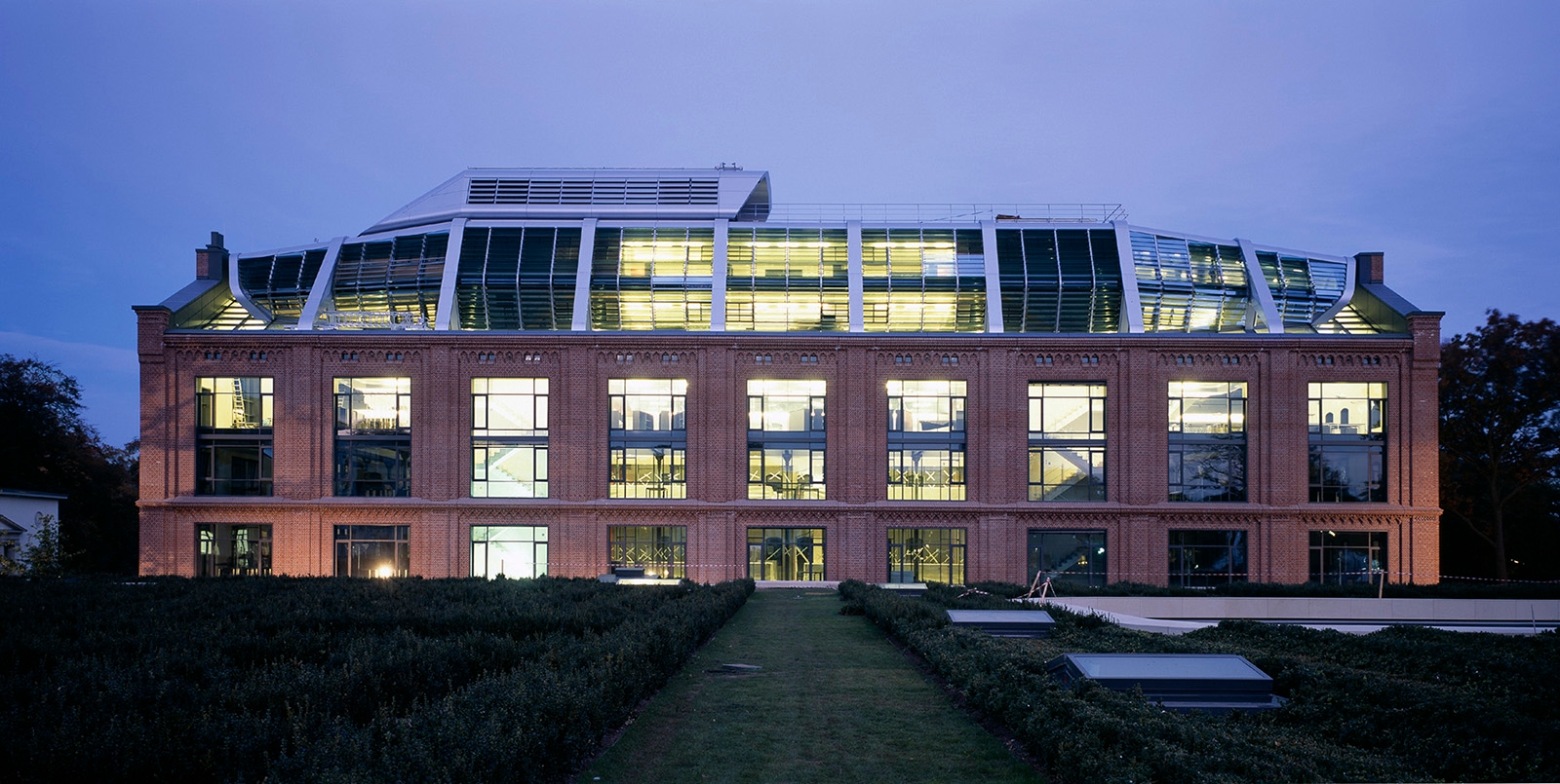An der Ostfassade des Erdgeschosses wird der ehemalige Hang des Ramée Parks mit der eingeschossigen schrägen Kantine architektonisch wieder aufgebaut bzw. neu interpretiert. Die erhaltenswerten Bäume sind Bestandteil der Gestaltung der Kantine. Der dreigeschossige Neubau entwickelt sich unter der im Bebauungsplan festgesetzten Geländeoberkante westlich der „Neuen Mälzerei“. Konzept ist eine harmonische und funktional auf die Aufgabe ausgerichtete Einbindung eines neuen Baukörpers in die Landschaft. Aus der Verzahnung von unterschiedlichen Geländehöhen entwickelt sich ein „unterirdisches“ Haus. Die entstehende „Welle“ definiert die Kubatur des neuen Bürogebäudes und Sportclubs und ermöglicht eine optimale Belichtung und Ausrichtung zur Elbe.