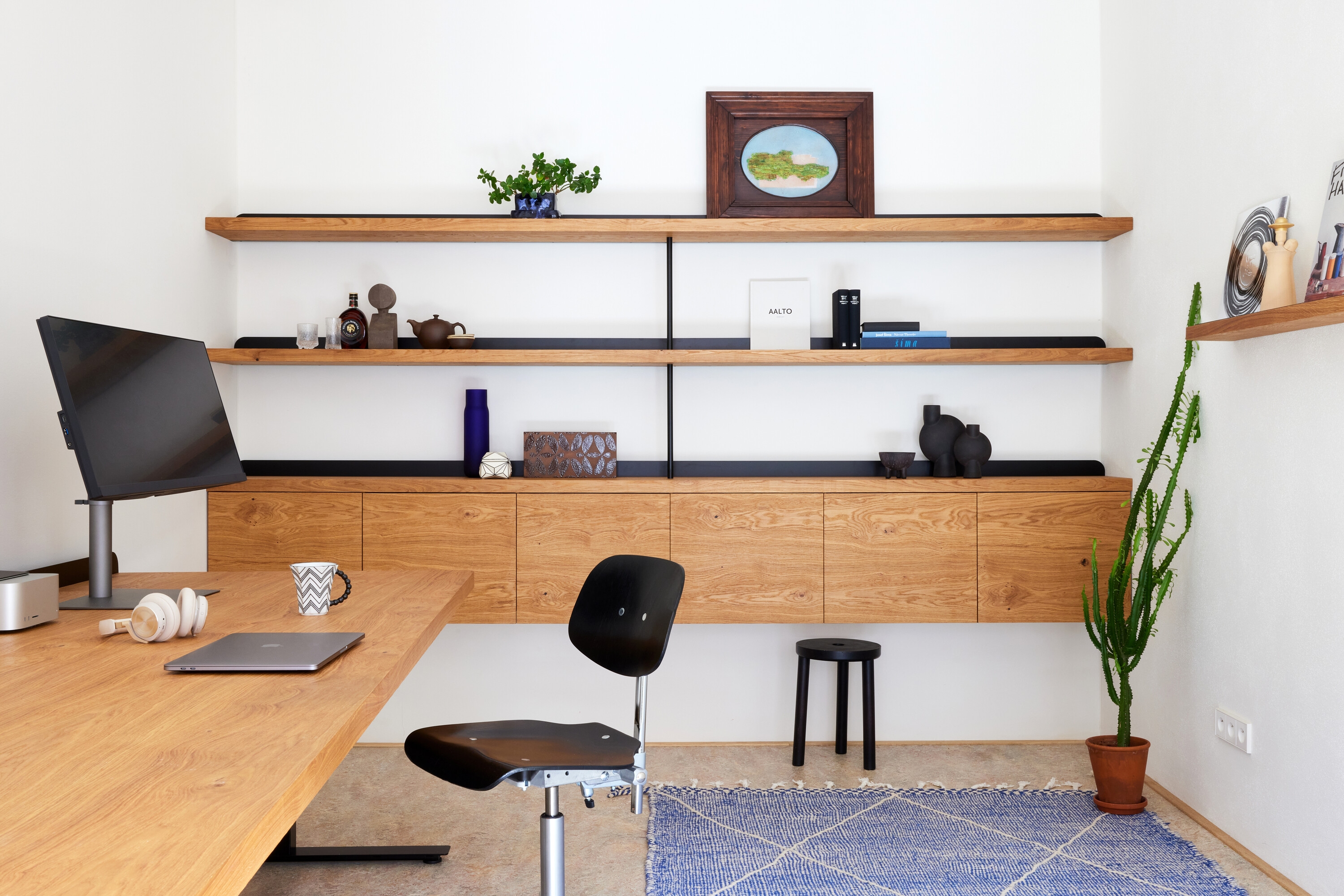 Every detail was given individual attention. The fact that the co-authors of the design, Matěj Janský and Cyril Dunděra, run the award-winning design janskydundera studio was reflected in the precise choice of interior furnishings and materials. The apartment is brightened by rich colours and is also equipped with original furniture from the production of MCDJ. "Quality individual elements can stand alone, and together they form a varied whole that can absorb further layers, not definitive and finished without the possibility of further development. We don't try to match everything with everything, because we believe this is how you create a welcoming and relaxed space where different people can feel comfortable and not out of place," say the authors.