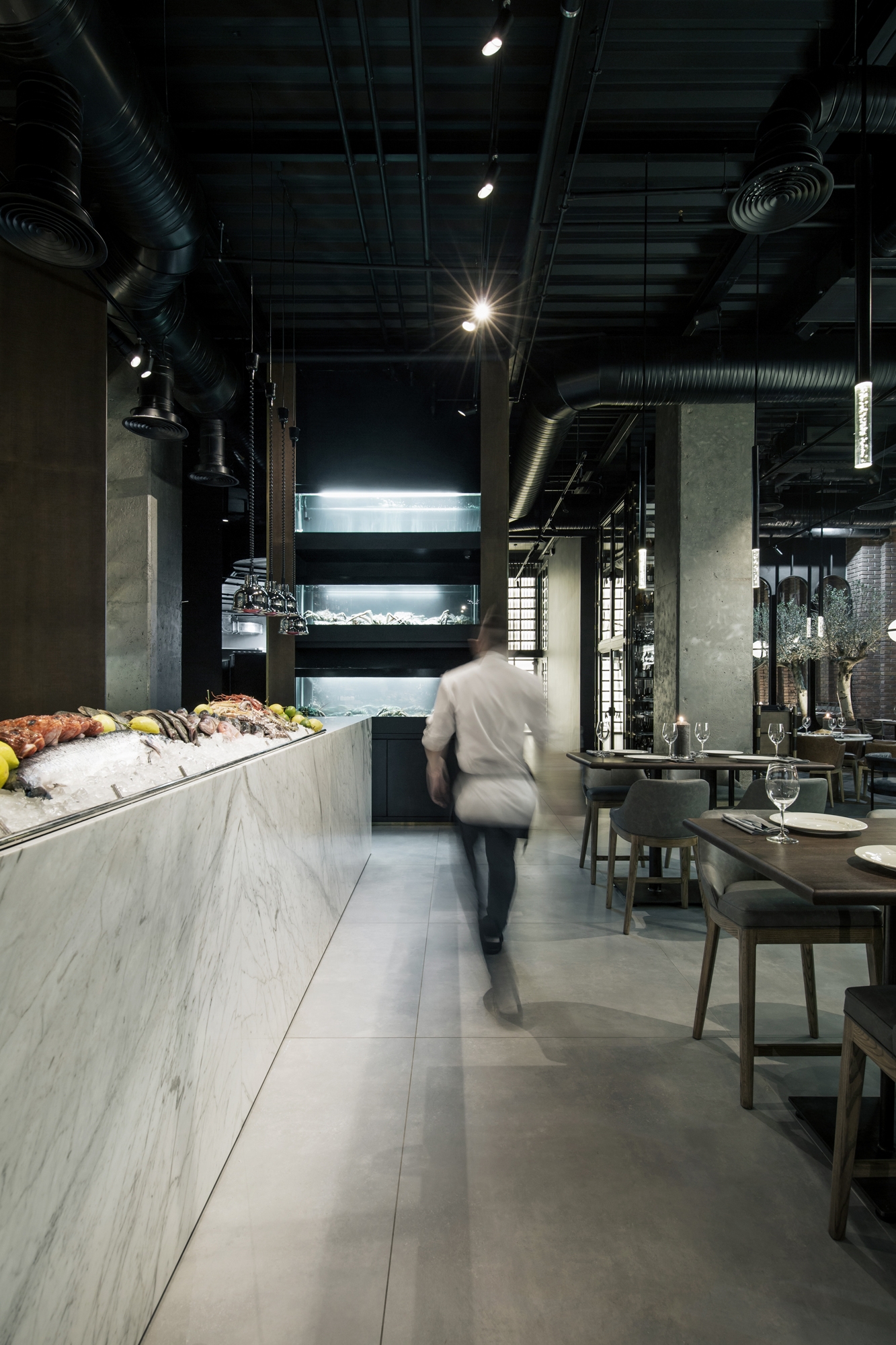 Actually, the main seafood direction of the restaurant defined its name. YoDezeen Architectural Studio, the authors of the projects, were set an objective to create a high-class elegant and respectable restaurant. As a result, we have a quality modern European interior. The architects only needed four months to completely reconstruct the area of the new restaurant location.