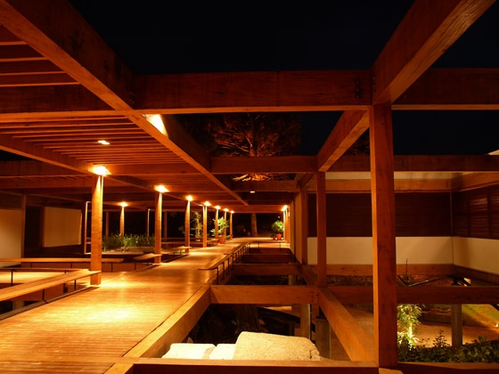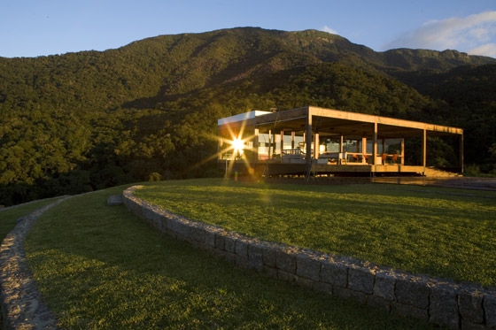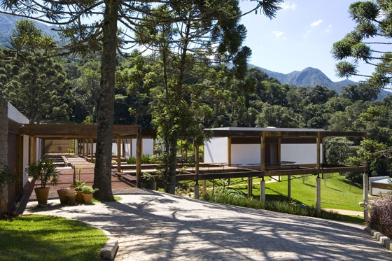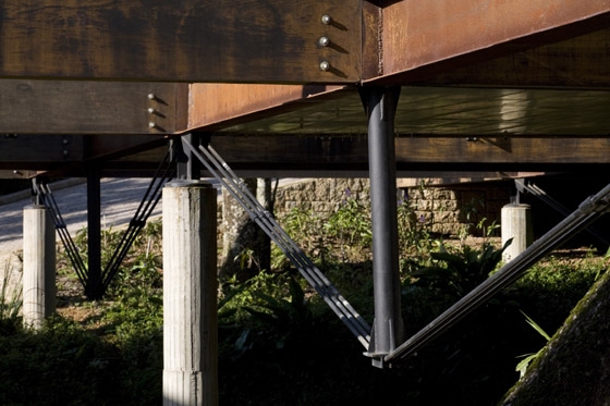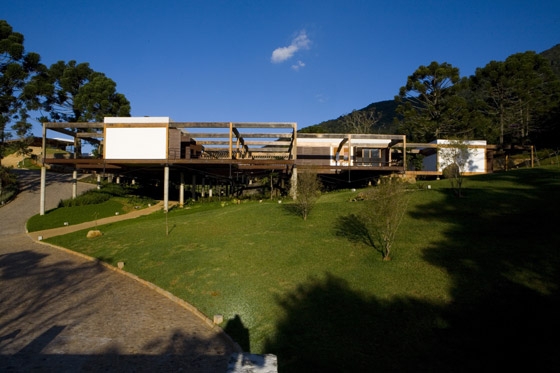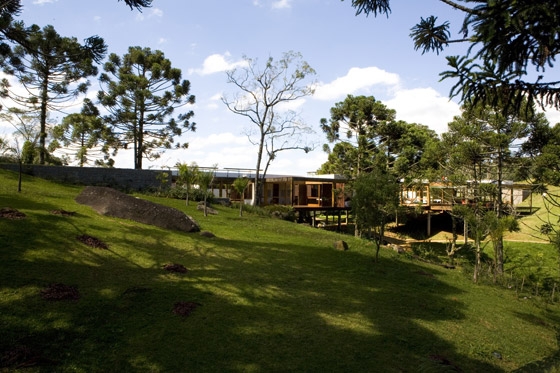 - because of the area extreme moist, raising the buildings was more than an aesthetical option. All buildings (house, leisure pavilion, housekeeper’s house and others) were suspended to avoid direct contact to the earth. It reduces deterioration of the materials and promotes a higher internal environment quality for the users;