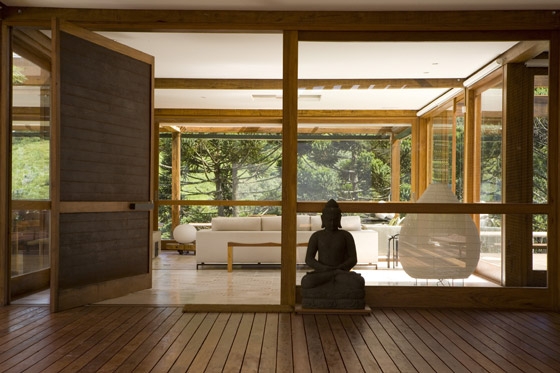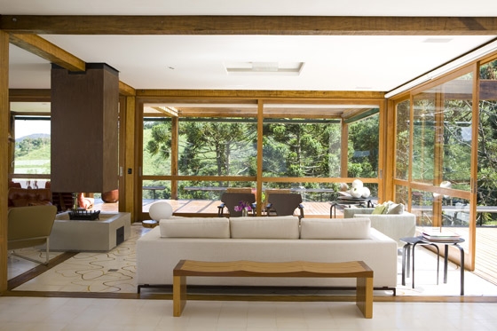 - the exuberant landscape can be seen from all rooms in the house. Large glass doors and few walls allow for great visual contact with exterior. Also, because temperatures get as low as 0ºC in Winter, the glass help to heat up the house during daytime. In the Summer, the large doors provide generous ventilation;