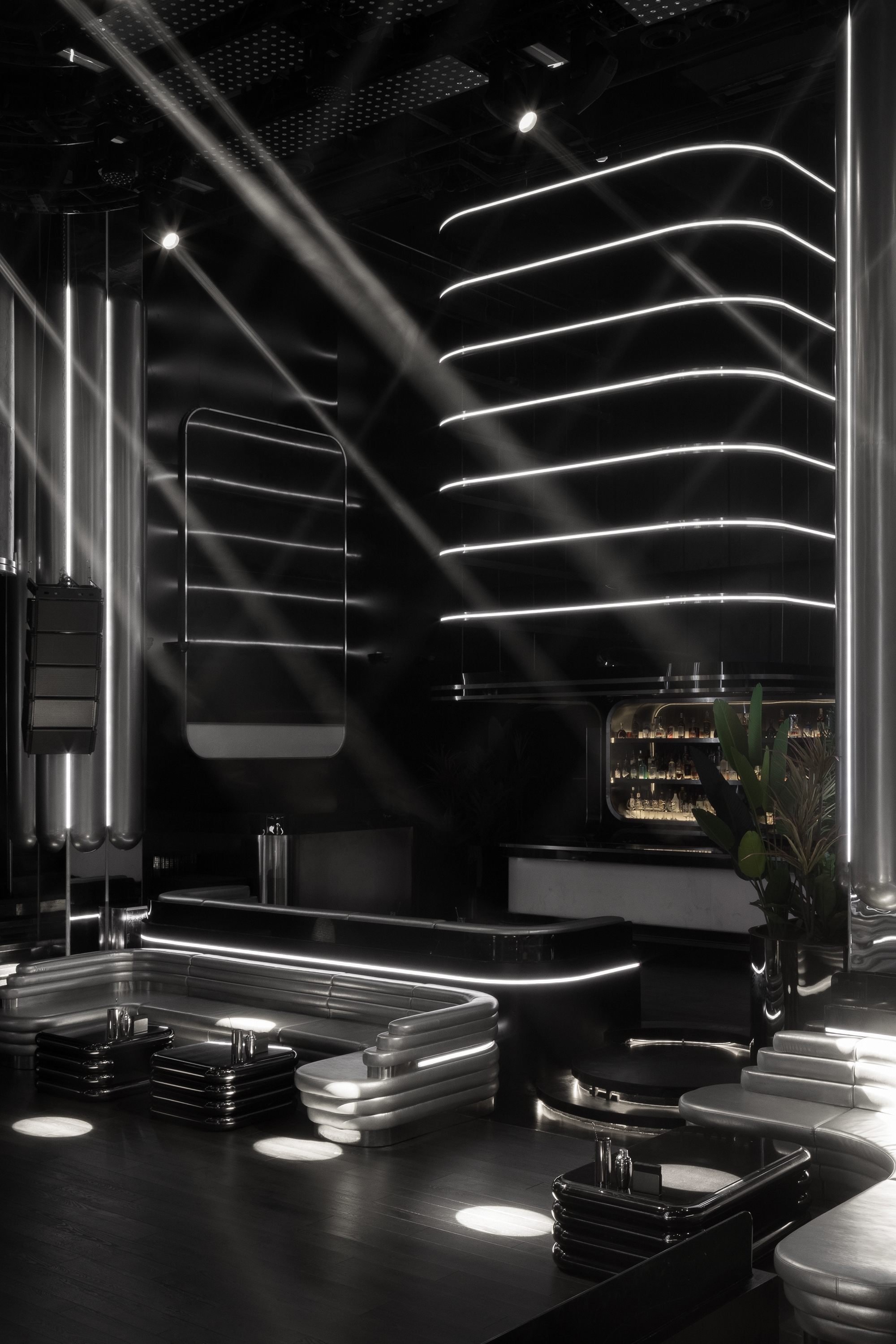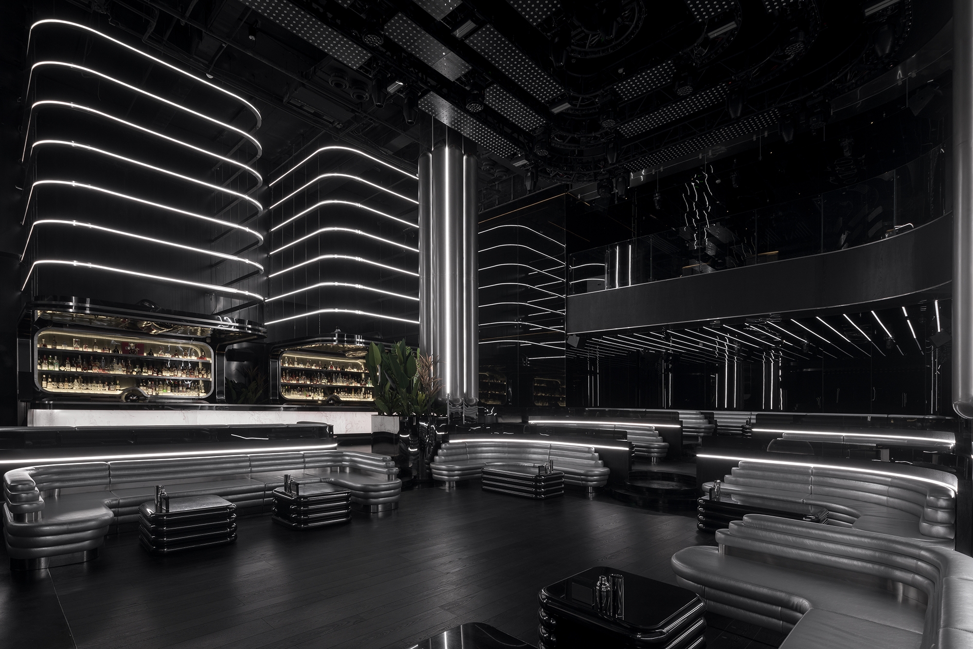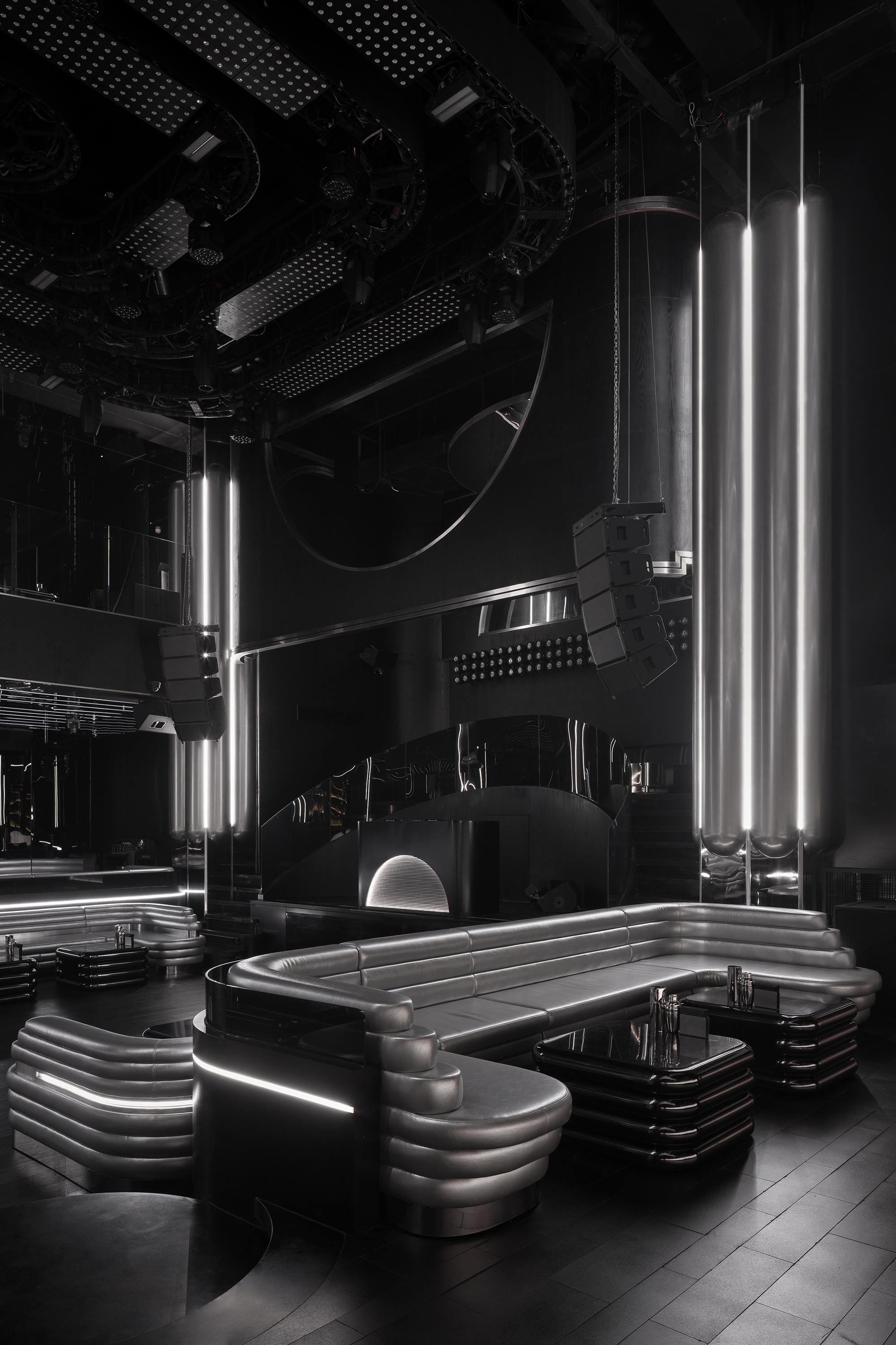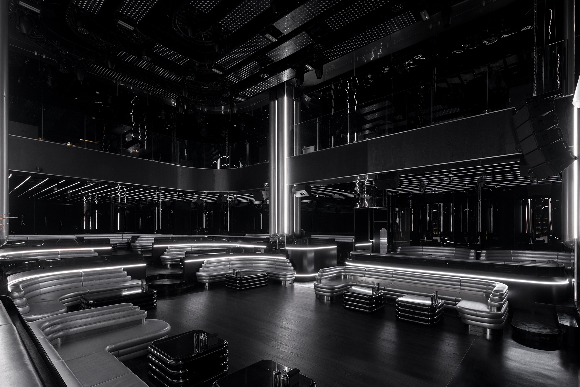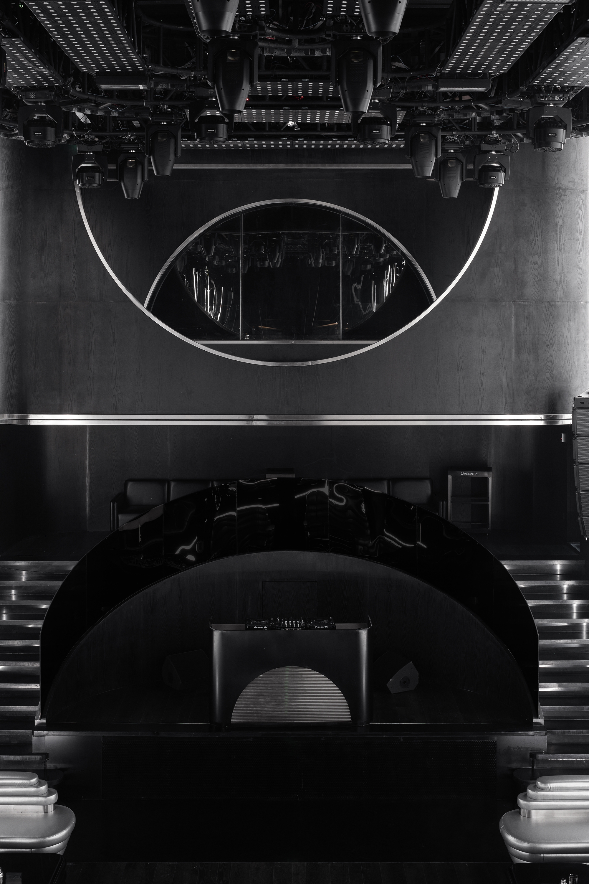 The 9m-high main space continues balanced, harmonious design languages. The spatial narratives and functional layout are centered around the lift-style DJ stage, which provides an unexpected experience and a panoramic view to all details in the space.