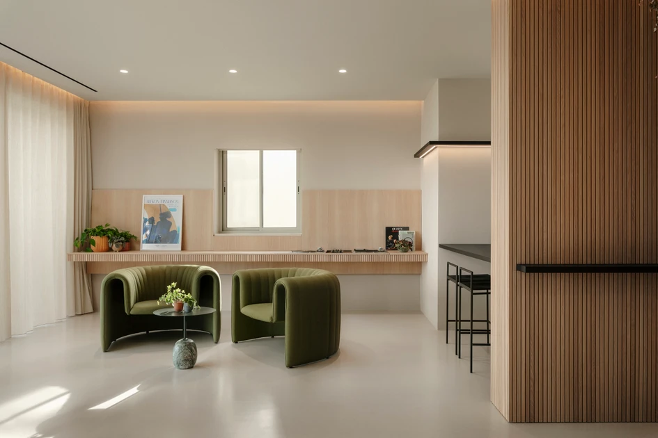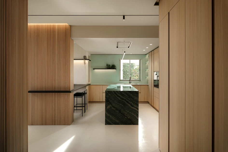 Grün Haus redefines the balance between tranquillity, functionality, and contemporary architectural expression, seamlessly integrating storage solutions while maintaining openness and fluidity. Designed to meet the evolving needs of a modern family, the project harnesses natural light, enhanced by carefully selected materials that diffuse and reflect illumination, creating a serene and inviting atmosphere.