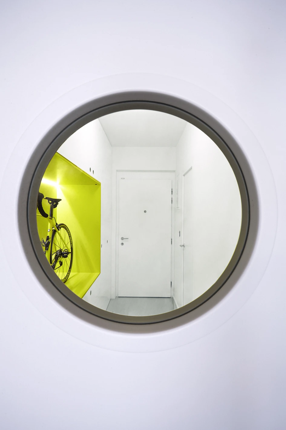 In the hall, which is connected to the bathroom and storage room, a wardrobe rised up. Owner with a passion for cycling has reserved space in the midlle for his beloved road bike . He also starts his cycling trips here whenever the guest house is not occupied. For sure there are some spare bikes in a storage room. It is in a case if someone from the guests fall in cycling love when passing the corridor. For this reason bathroom has a shower instead of tub, which better serve guests and athletes. So let's go into the pedals and safely back!