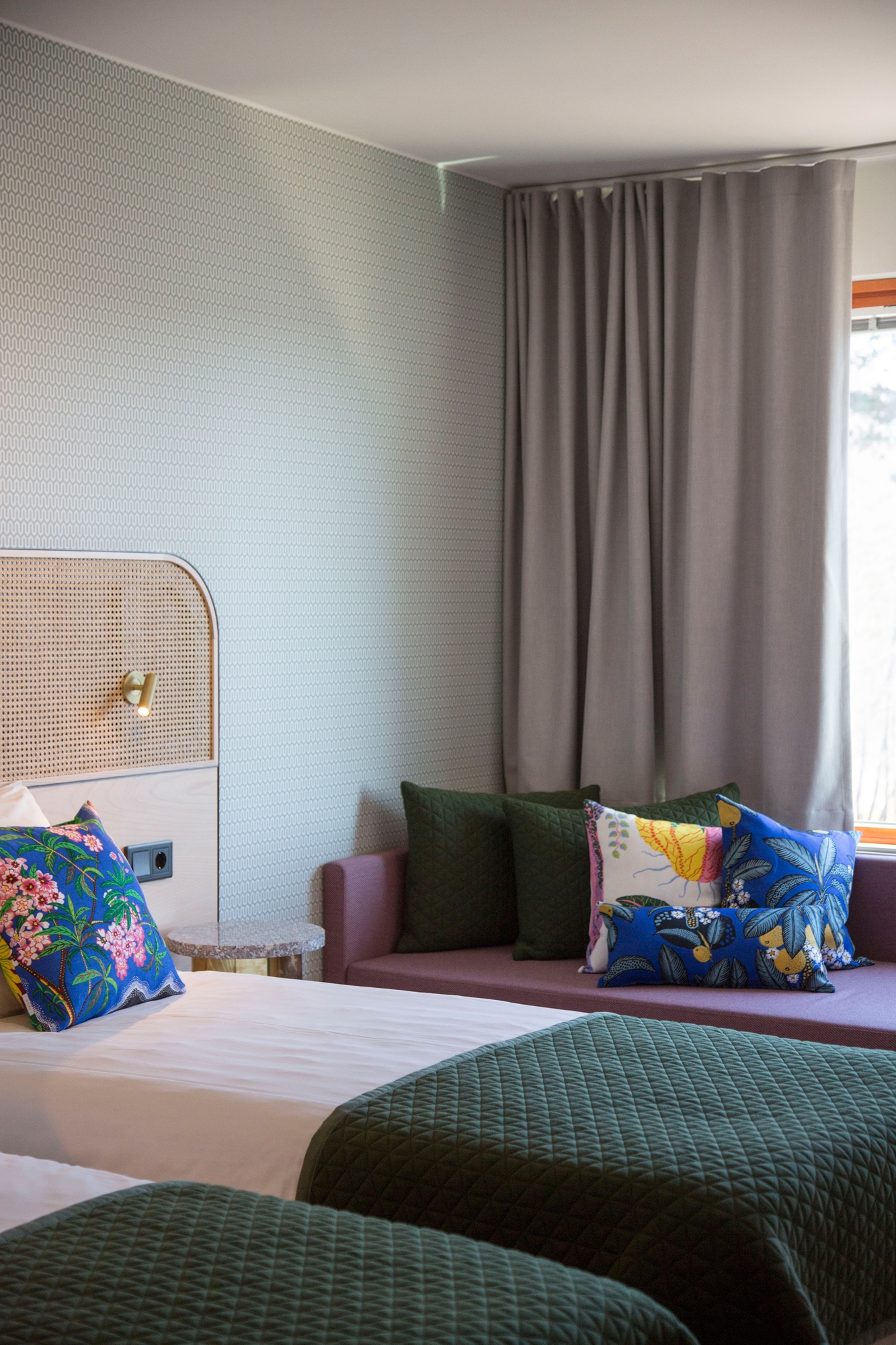 The newly renovated Hanaholmen offers visitors a unique and capturing atmosphere. The beautifully renovated cultural institute welcomes guests to the new lobby bar and the revised restaurant, hotel rooms and conference facilities. KOKO3 was responsible for the interior design of Hanaholmen. The building is originally from 1975 and is a valuable piece of Finnish 1970´s architecture, design and art history. The cultural institute´s interior design bows to the original interior but pairs it up with contemporary design. The renovation covers the lobby areas, the restaurant, the auditorium and the conference rooms as well as hotel rooms. A number of unique furniture and features were designed especially for Hanaholmen, for example beautiful hand blown glass lights which were named after the cultural institute. Half of Hanaholmen´s 66 hotel rooms were redesigned. Svenskt Tenn - the Swedish design house - was a source of inspiration for the new hotel room concept.