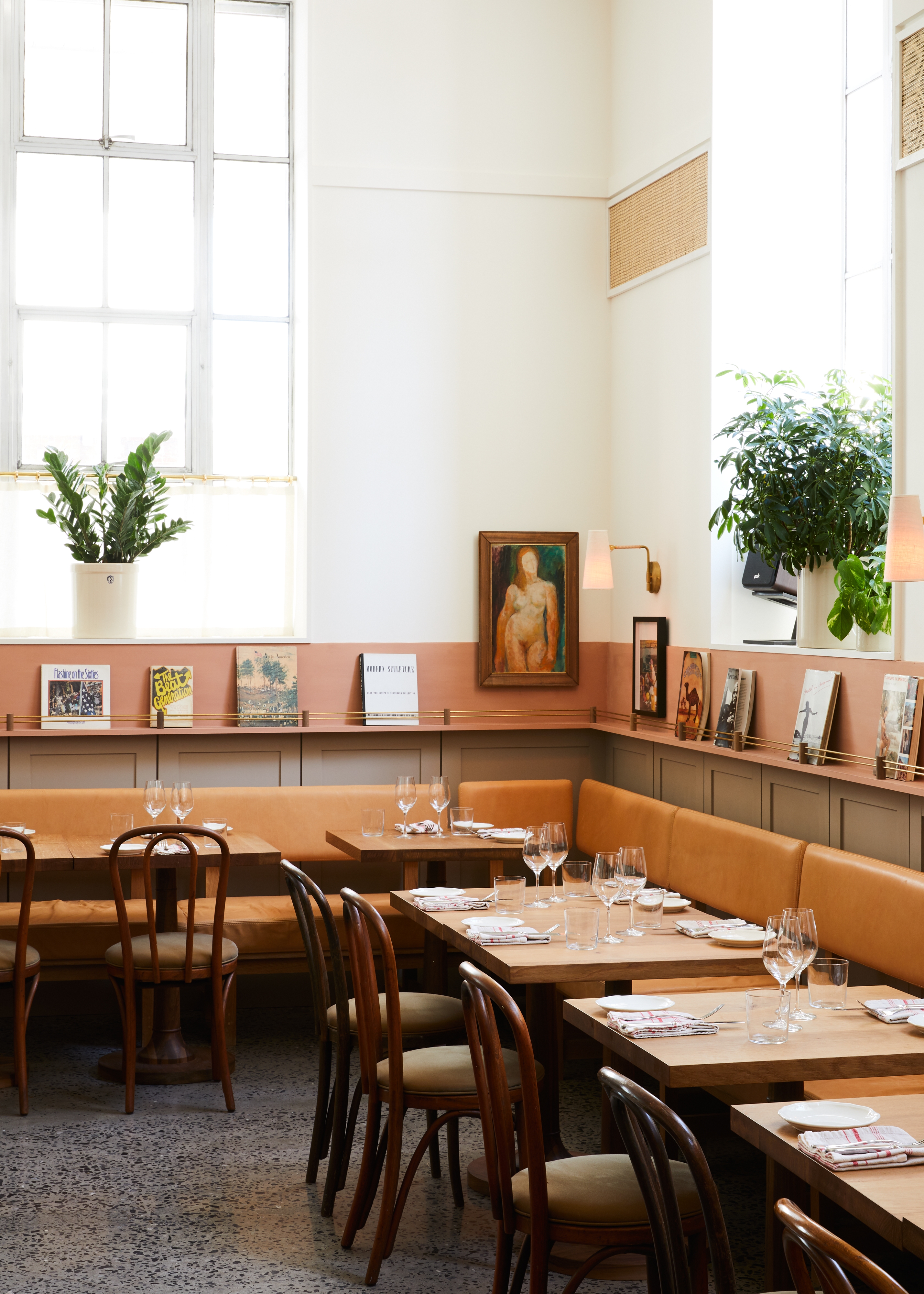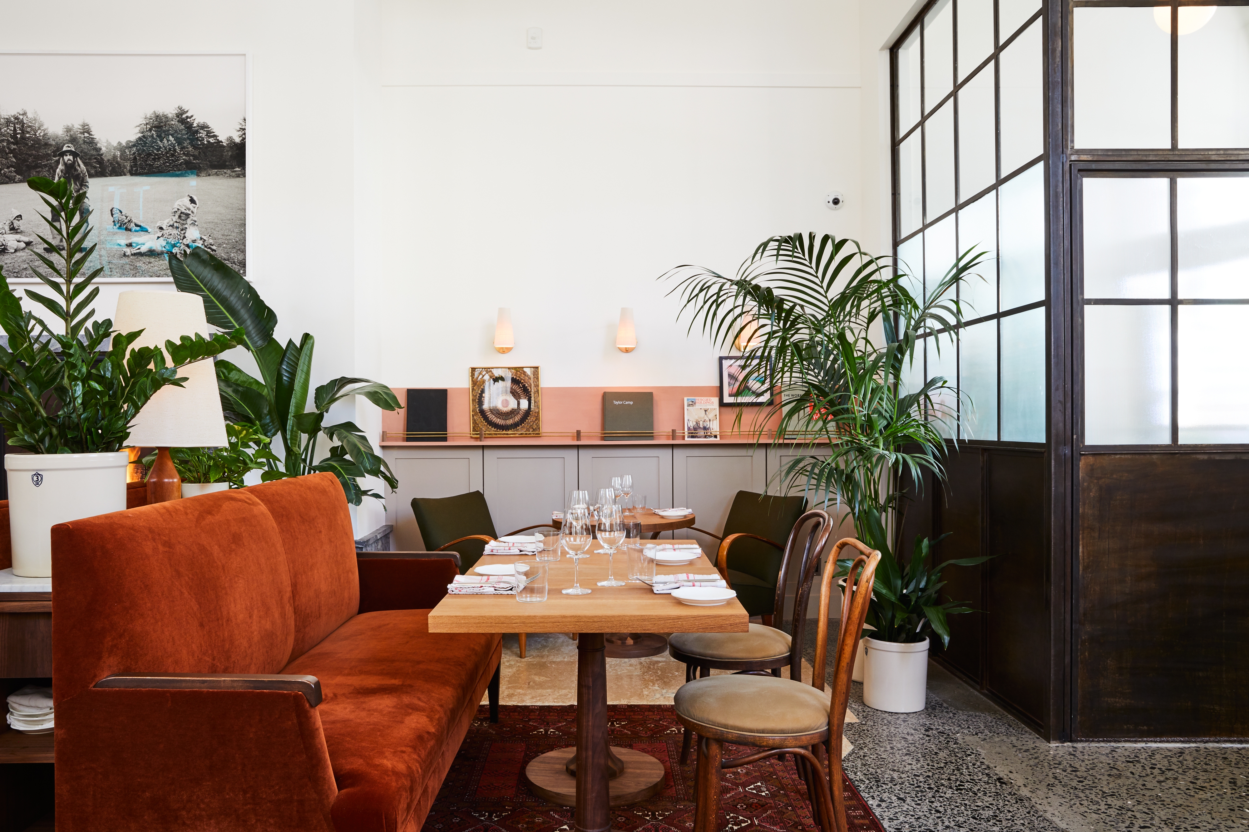 Ross has crafted a seasonal, locally sourced menu, which showcases the bounty of the Hudson Valley region. The 50-seat dining room combines terrazzo floors, intimate velvet couches, and accents of greenery alongside an original mural by painter and illustrator Happy Menocal in an atmosphere of understated glamour.