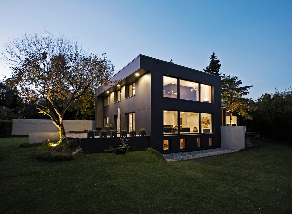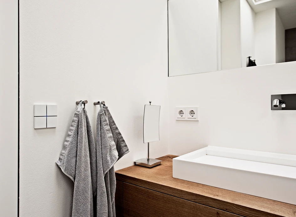 That is the motto of this impressive house at a lake in Bavaria, Germany. This house, that made the dream of a couple came true, is characterized by its sleek design and minimalistic interior. The switches of Basalte fit perfectly in the picture.