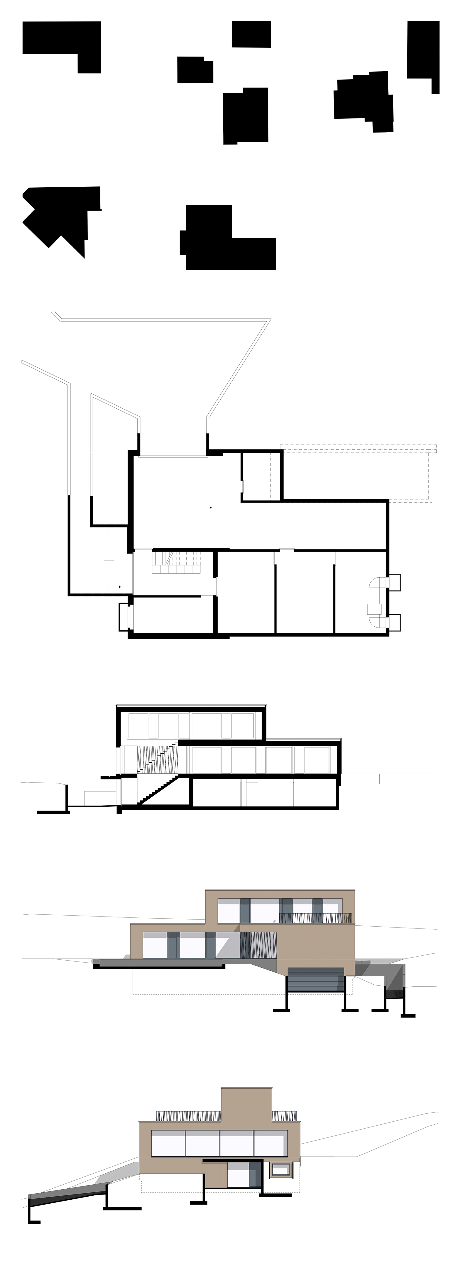 The existing terrain was reinterpreted, together with the landscape architect, to create a sequence of habitable platforms. To access the house, one arrives by car into the spacious garage or as a pedestrian at the obscured entrance. With the use of large panels on the facade in a soft earth tone, the building appears monolithic while blending into its surroundings. The contrasting bare concrete walls accentuate the interventions made to the terrain.