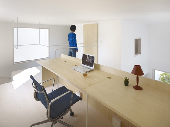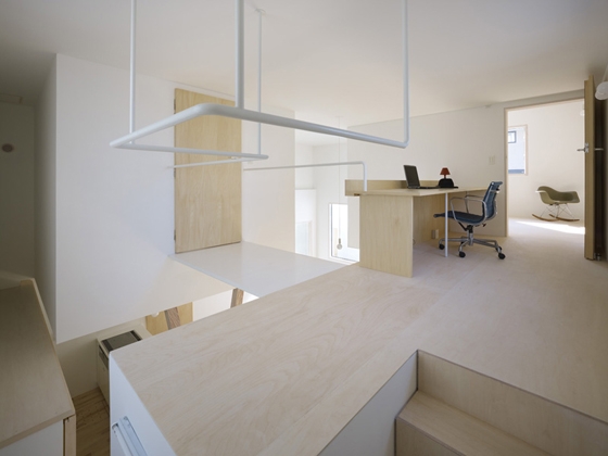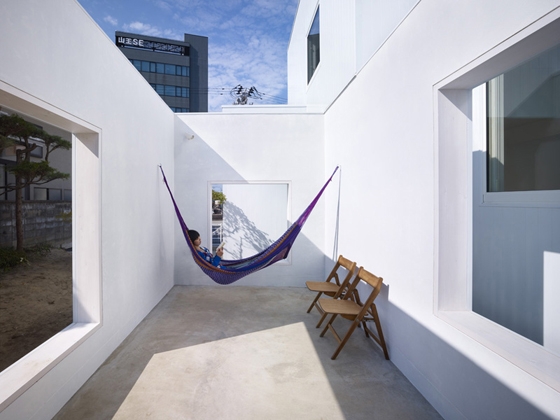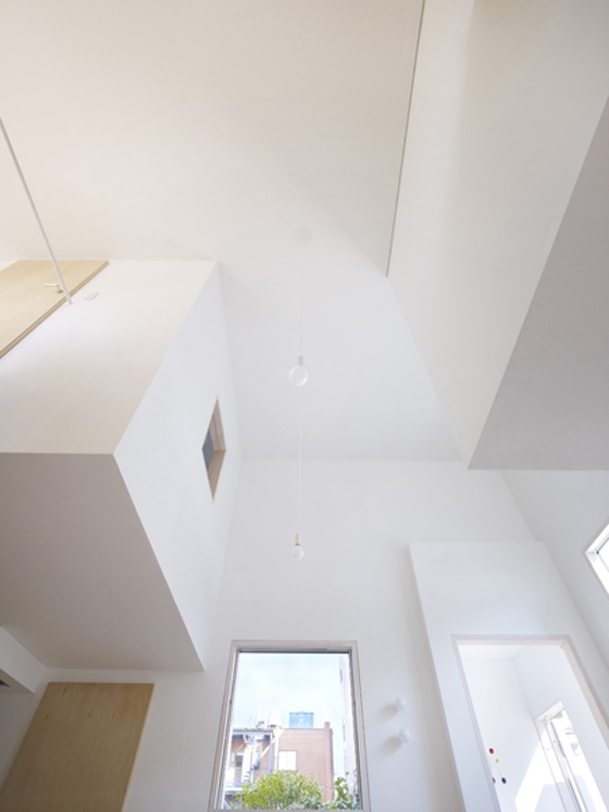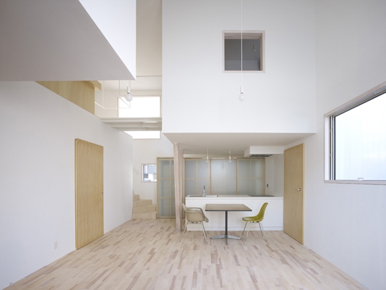 We designed this house on simple rules based on 2 factors: rooms that need to be enclosed should be kept in boxes and rooms that do not need to be enclosed are in the gaps between boxes. By applying these rules, the space is presented with a complex structure that gives a feeling of extensive space.