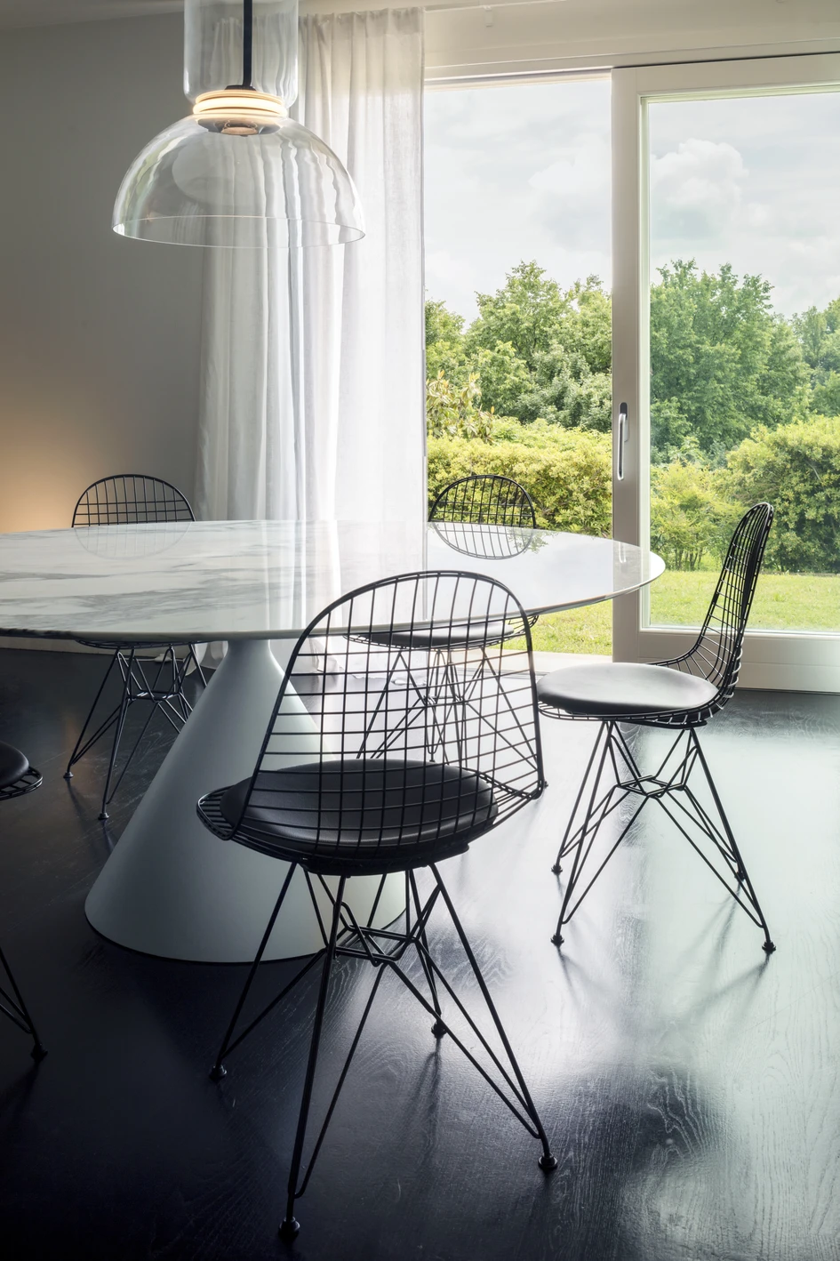 In fact, the black iron walls are characterized by deep chromatic shades that refer to artistic interpretations and invite to concentrate on the beauty of darkness. The color white, in its perfection, highlights the boundary and balances the roughness of the black materials.
