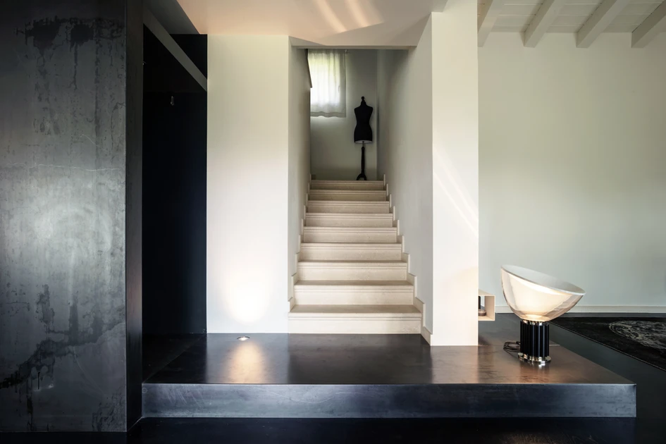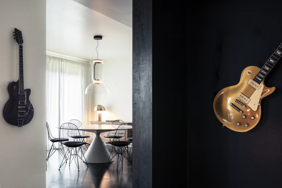 A continuous contrast between dark and light: the beauty of one is defined by the absence of the other. The interior design of this house was commissioned by a professional couple, an instrumentalist and an expert in Italian artisanal perfumes. Their working experiences share an instinctive propensity for experimentation that they want to express it at home as well: a space with bold tones that reflects their lifestyle without compromises.