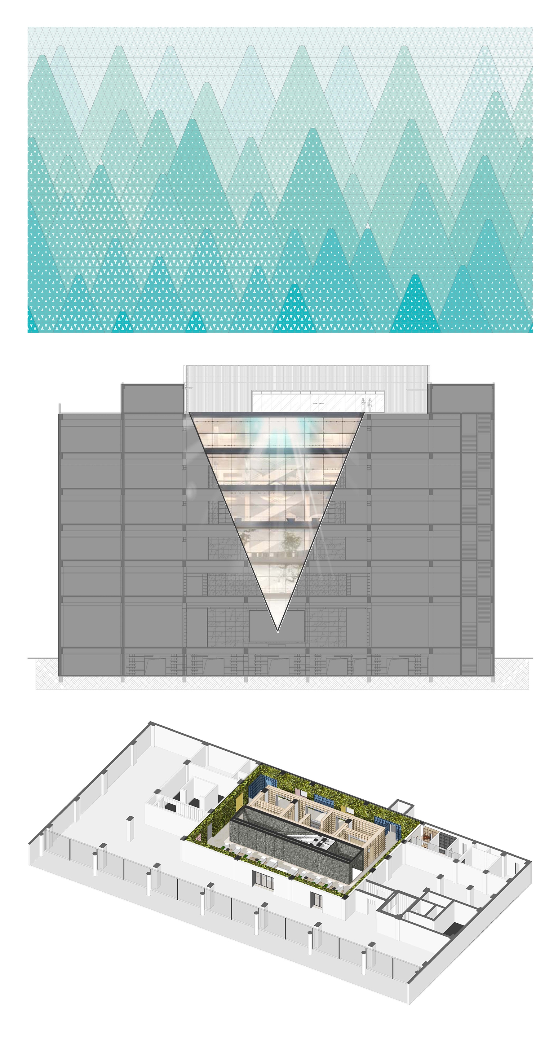 The light cone as a sacred space inspires us to perceive time and life with stillness and light. One of the most free and easy is the Chinese view of life, the so-called reincarnation of everything, the word of "life". From the roof garden to the basement, we have planting areas of different sizes on each floor. They run through, forming a green dark line to echo the bright light cone. Einstein once said that "life is fragile, short and full of illusions." We also try to create illusions of "eternal" to resist this painful realization. However, from Chinese perspective, life is clearly optimistic. Everywhere in the pessimistic exclamation of others, the Chinese can always read their confidence to the future. This green symbolizes vitality; such a world is worth us fighting for.