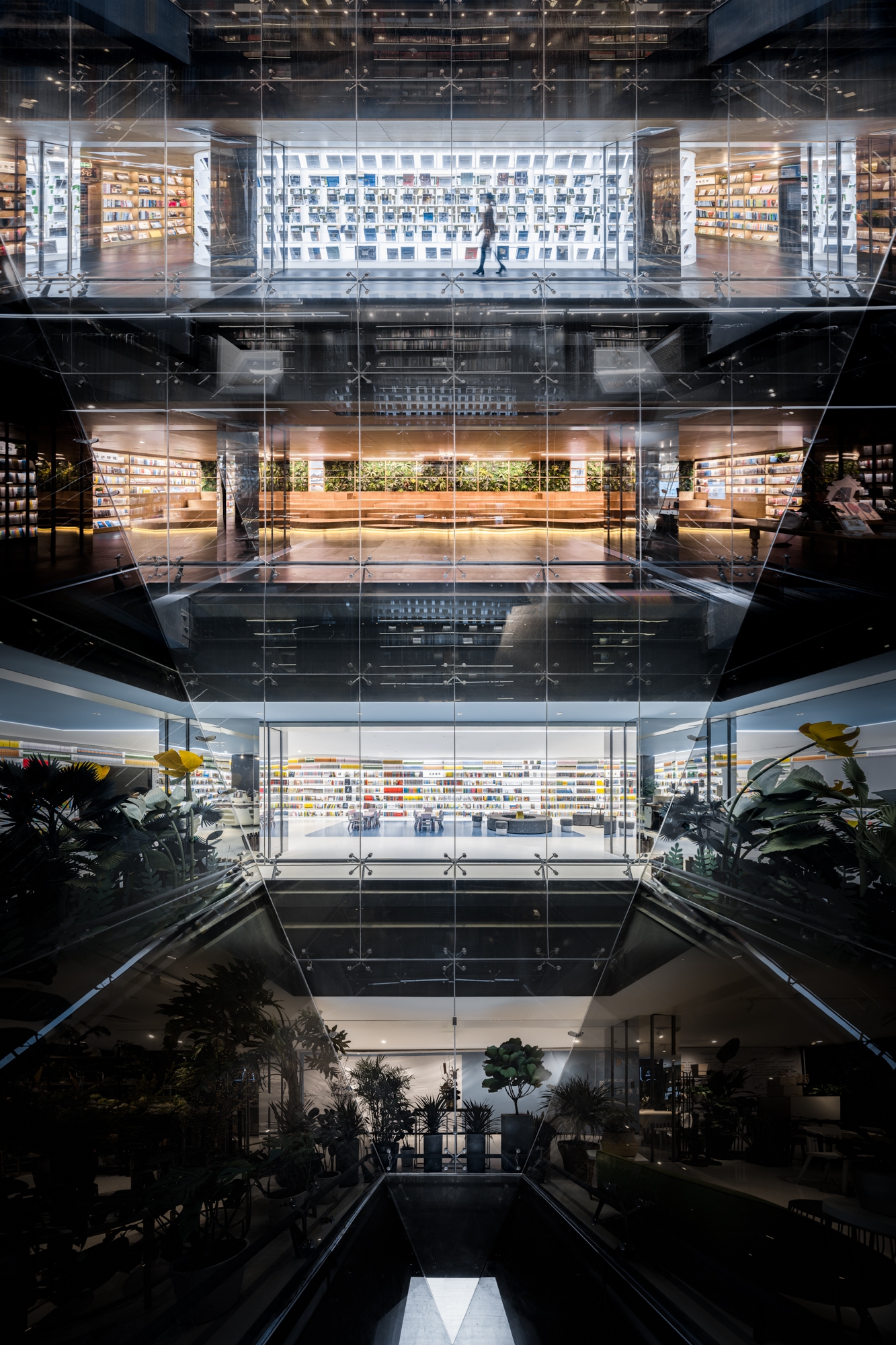 No vibrant world will be a single and simple system. The bookstore has a total of 10,000 square meters, with one basement level and seven floors above ground. The light cone is the center and it is surrounded by book world. Around the light cone is the core of the bookstore. From the first floor, there are urban art living room, 24H study room, children's library, humanity reading room and silk road reading room, art reading room and the future reading room, and the bookstore on the roof displaying rare books.