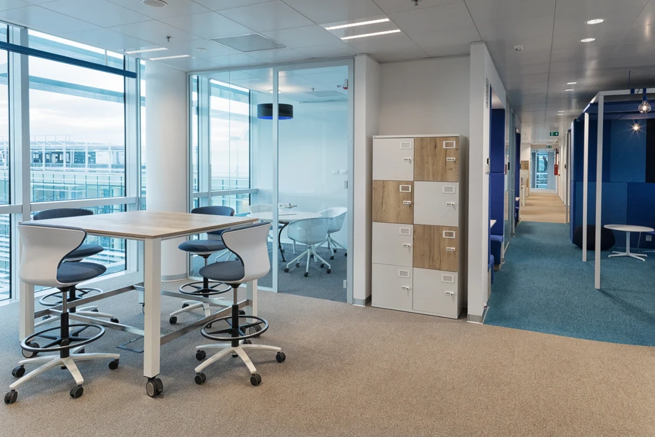 Für jeden Mitarbeiter zu jeder Tageszeit der ideale Ort zum Arbeiten: So lautet das übergeordnete Ziel bei der Organisation der Räumlichkeiten und der Einrichtung. Ganz der modernen Identität und dem rationalfunktionalen Geist des Unternehmens folgend, zeigt sich das Layout in einer dynamischen und fließenden Anordnung. Fokussierte Einzelarbeit und auch interaktives Zusammenwirken: Die Raumplanung berücksichtigt jede Situation.
