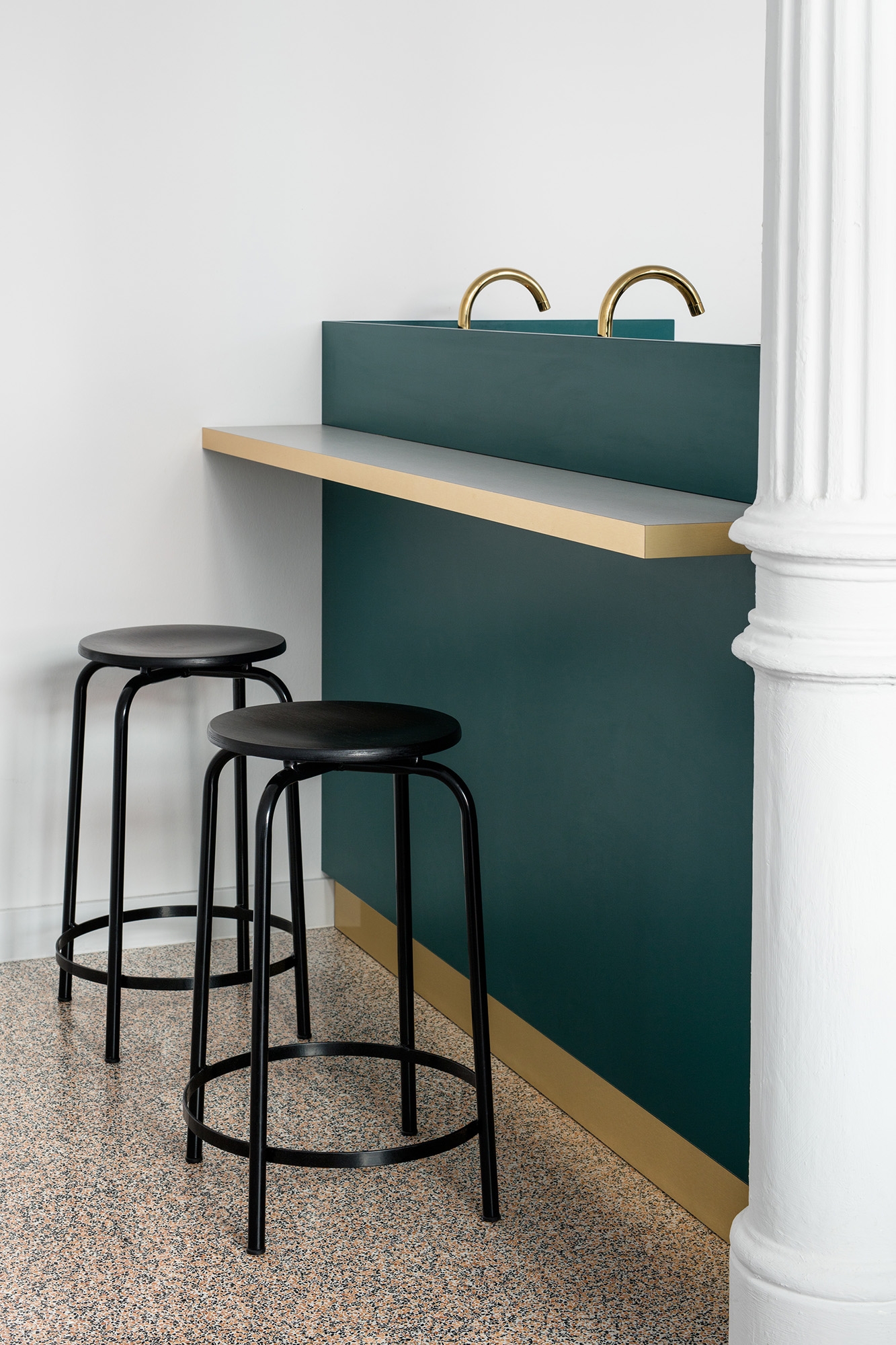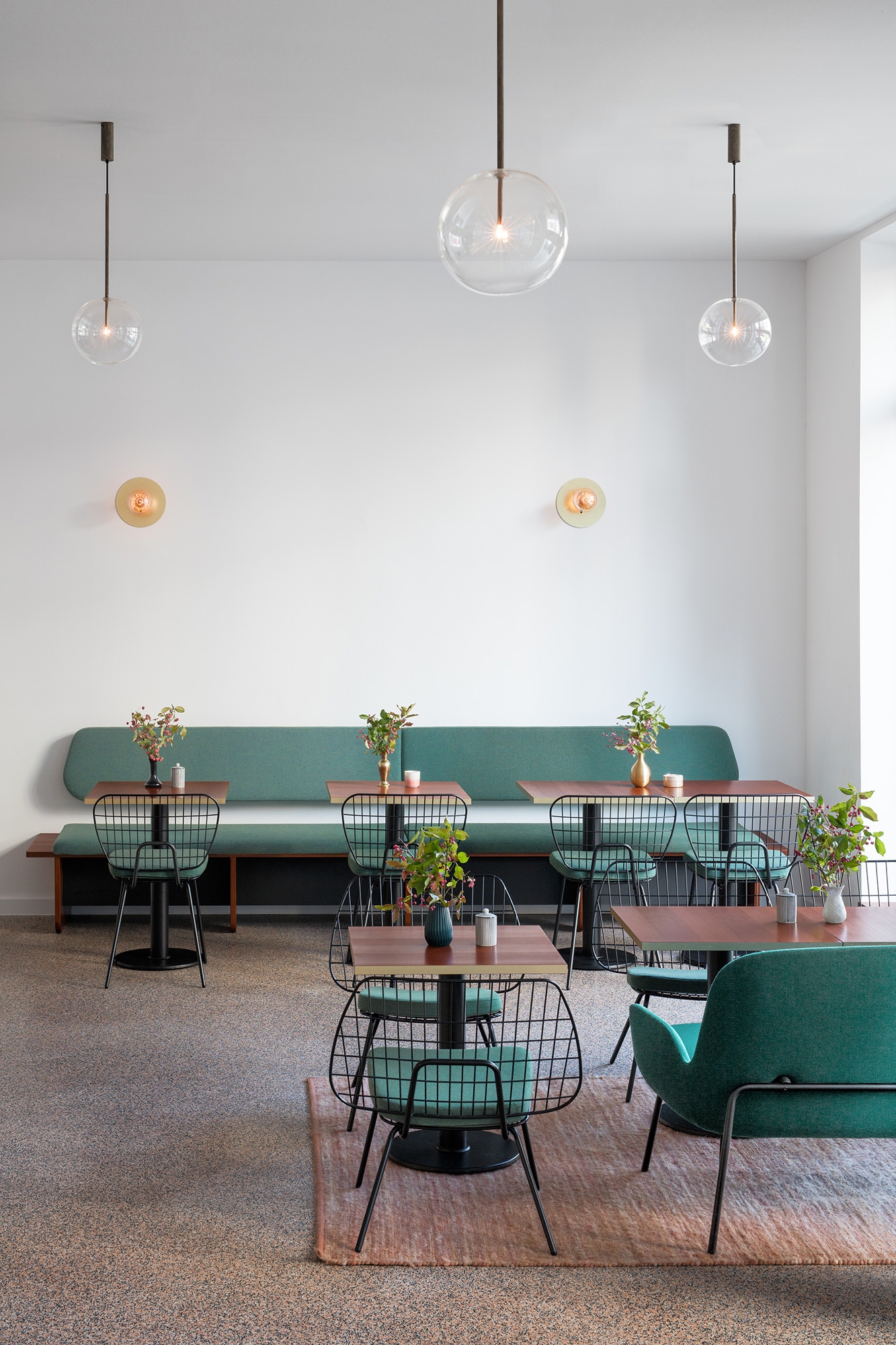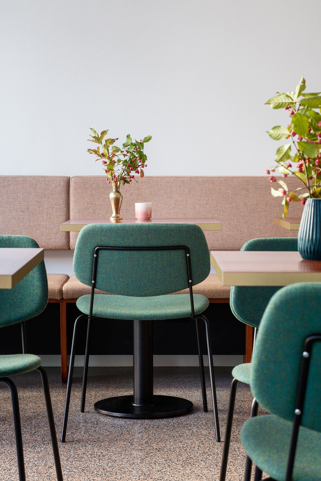 PARAT has designed the interior for the new café and pâtisserie Liebes Bisschen in Hamburg. The space combines references to the 1950s with a contemporary palette of colours and materials. The layout has been restructured to create a generously proportioned front-of-shop hospitality space with a small salon and the bakery looking back out onto the interior courtyard. Seamless Terrazzo-style designer screed is used to maintain a unified colour concept throughout the café.