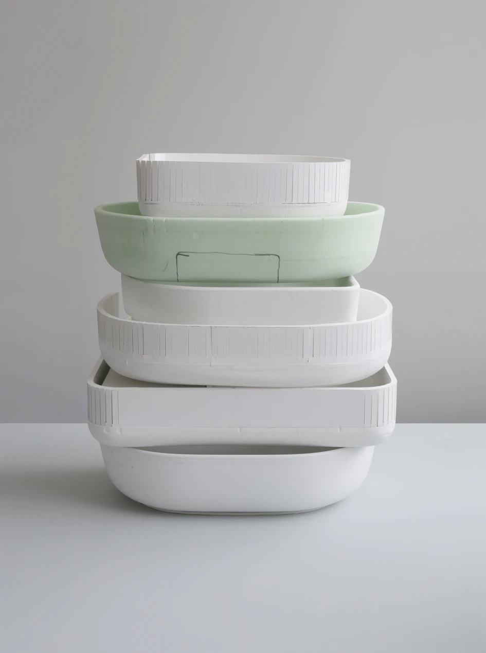 The optionally glazed exterior is available in satin matte white, grey or sand tones. Table with drawers have a painted finish, table tops comes in quartz stone or solid wood.